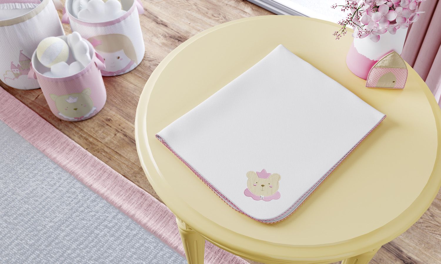 O cueiro é o verdadeiro aliado das mamães e dos bebês. Confeccionada em tecido de malha 100% algodão, a peça embala o pequeno como um charutinho, proporcionando o aconchego que todo recém-nascido merece nos primeiros meses de vida. Esse modelo, Amiguinhas Ursa Princesa, ganhou o belíssimo bordado de uma ursinha coroada em tons suaves.