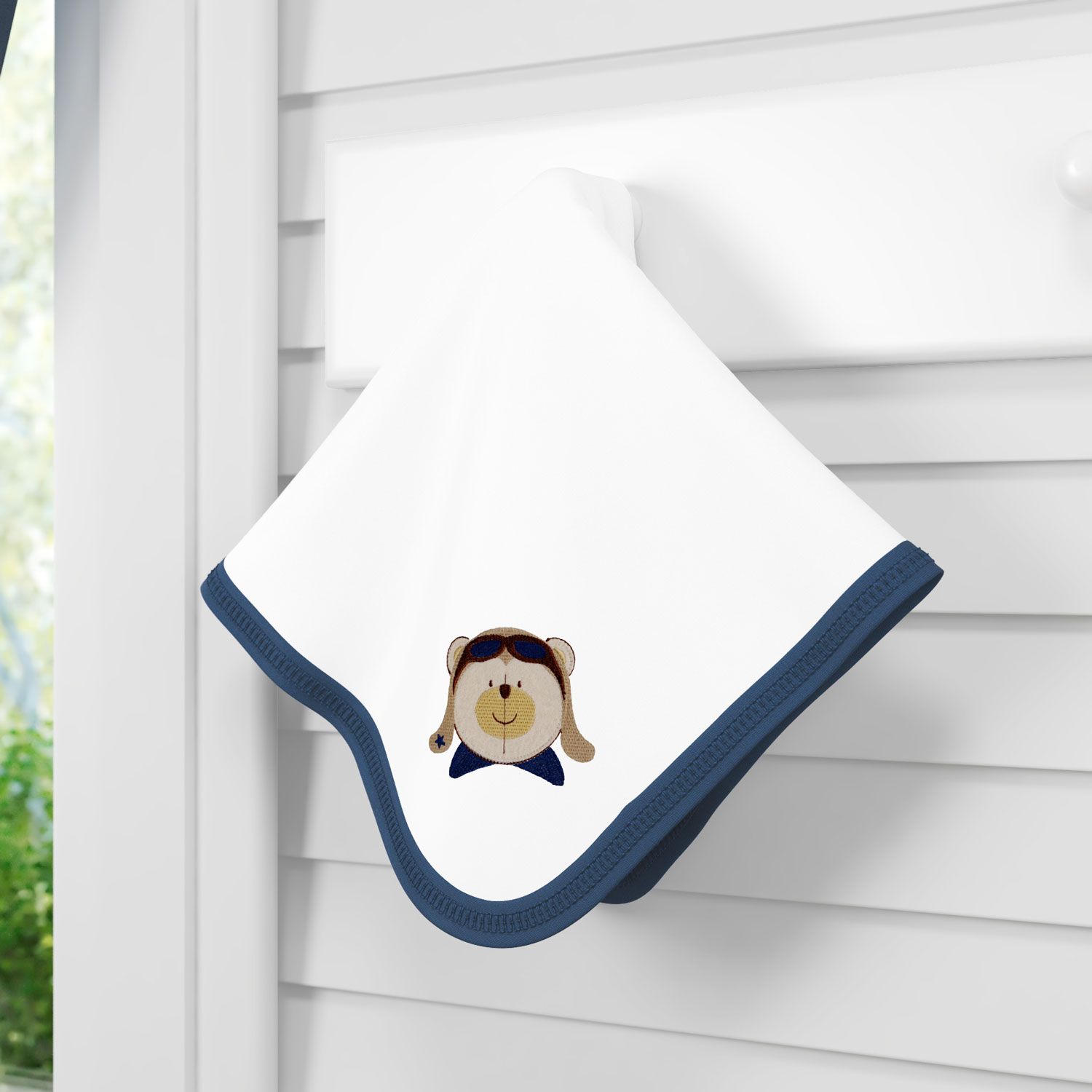 O carinho da mamãe chegou na forma de uma fraldinha super elegante! Com o capricho da Coleção Urso Aviador e o bom gosto da Grão de Gente, o Cueiro vai ser o melhor aliado das mamães e ainda acrescentar uma porção extra de charme! O acessório, confeccionado com tecido 100% algodão, é usado para enrolar o neném como um charutinho, mantendo seu tesouro aquecido e tranquilo, como na barriga da mamãe. Ele também é super útil para proteger o rostinho do sol, forrar a cadeirinha do carro e embalar o bebê numa soneca angelical. Essa gracinha ainda traz um simpático ursinho piloto num bordadinho exclusivo para arrancar suspiros das mamães caprichosas!