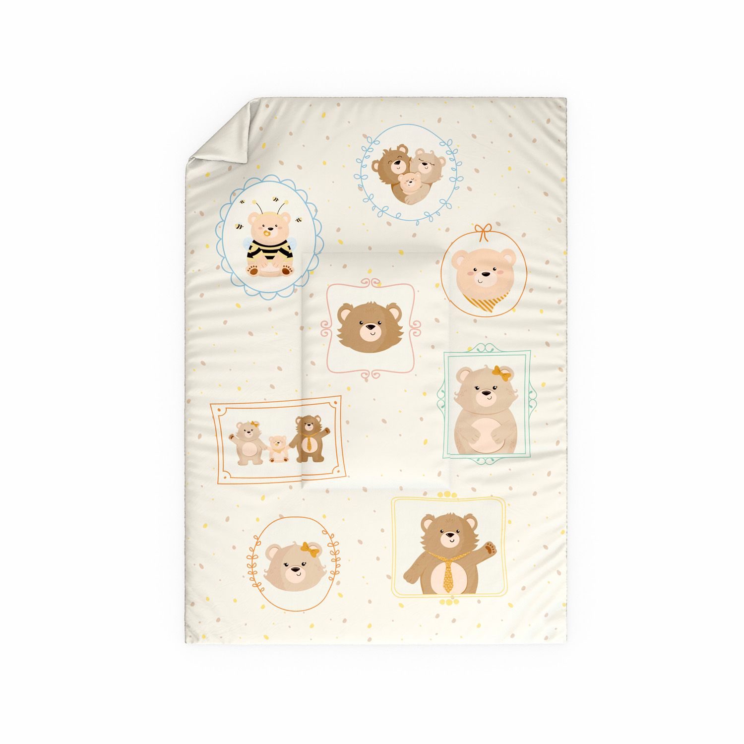 O Edredom de Berço Estampado Família Ursinho traz uma proposta lúdica e repleta de fofura para compor o enxoval de bebê dos sonhos. Com a exclusividade da Grão de Gente, essa linda peça com estampa em alta definição vai transformar o visual do quarto de bebê e proporciona conforto ao seu amor, em todas as estações.