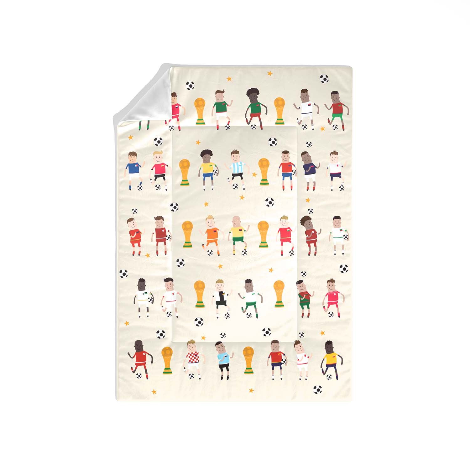 Quem nunca sonhou em ser um jogador de futebol? Criada para marcar um golaço na decoração do cantinho dos pequenos, o Edredom de Berço Seleções do Mundo tem tudo que a criançada precisa para se sentir dentro de um estádio.