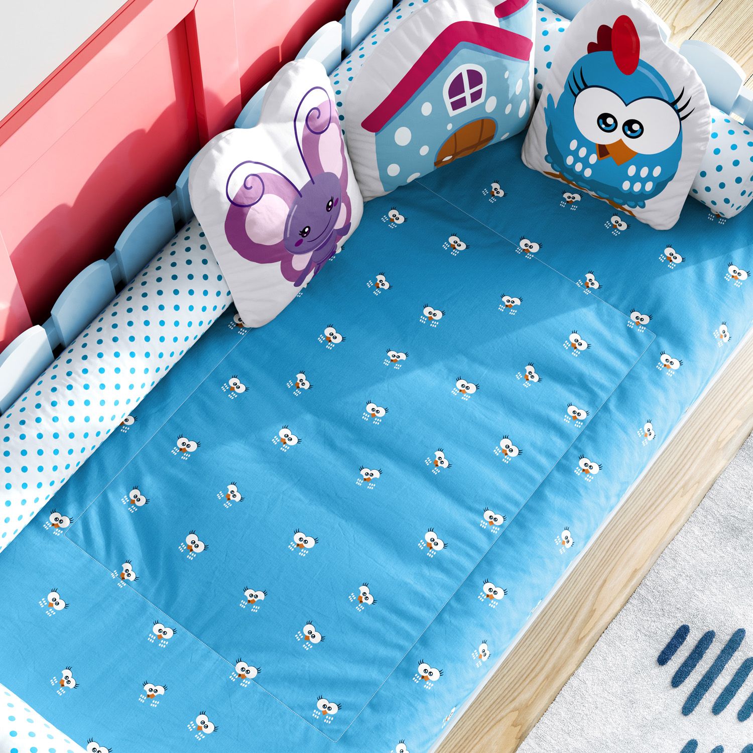 Diversão e aconchego com muito pópópó! O Edredom de Mini Cama Galinha Pintadinha Olhinhos é uma peça prática e repleta de estilo, que traz um tema lúdico para o enxoval de bebê, além de aquecer o pequeno na medida certa, em todas as estações. Exclusividade da Grão de Gente, essa linda estampa azul em alta definição vai compor a decoração do quarto com conforto e originalidade.
