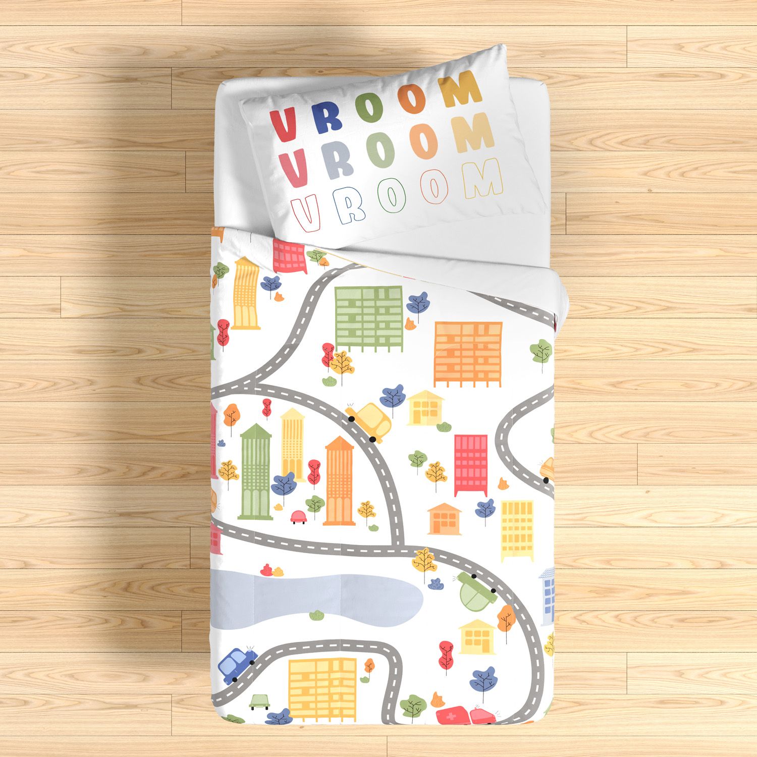 O Edredom Infantil Pista Carrinhos é uma criação exclusiva da Grão de Gente que vai transformar o quarto dos pequenos em uma grande aventura na cidade!