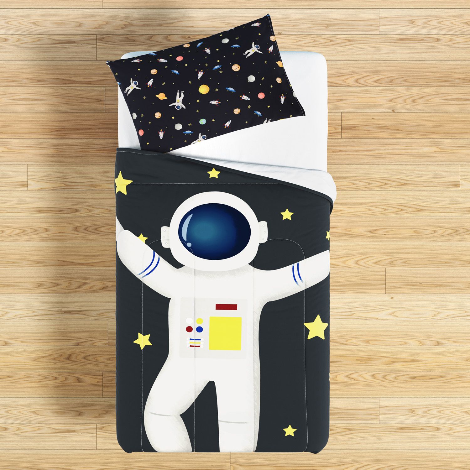 Edredom Infantil Solteiro Astronauta nas Estrelas Preto