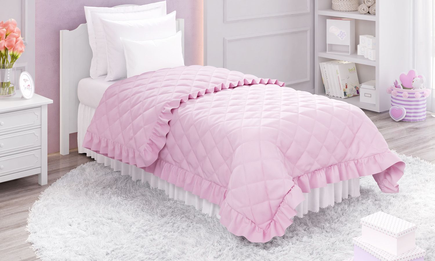 Conforto, design gracioso e charmoso é o que você deseja na hora de escolher um edredom para o quartinho da sua menininha. O Edredom Infantil Solteiro com Babados Floral Monet é tudo isso e muito mais, sua menina vai sentir todo o conforto do seu tecido 100% algodão, já os babados franzidos e o matelassê encantam as pequenas e também as mamães!