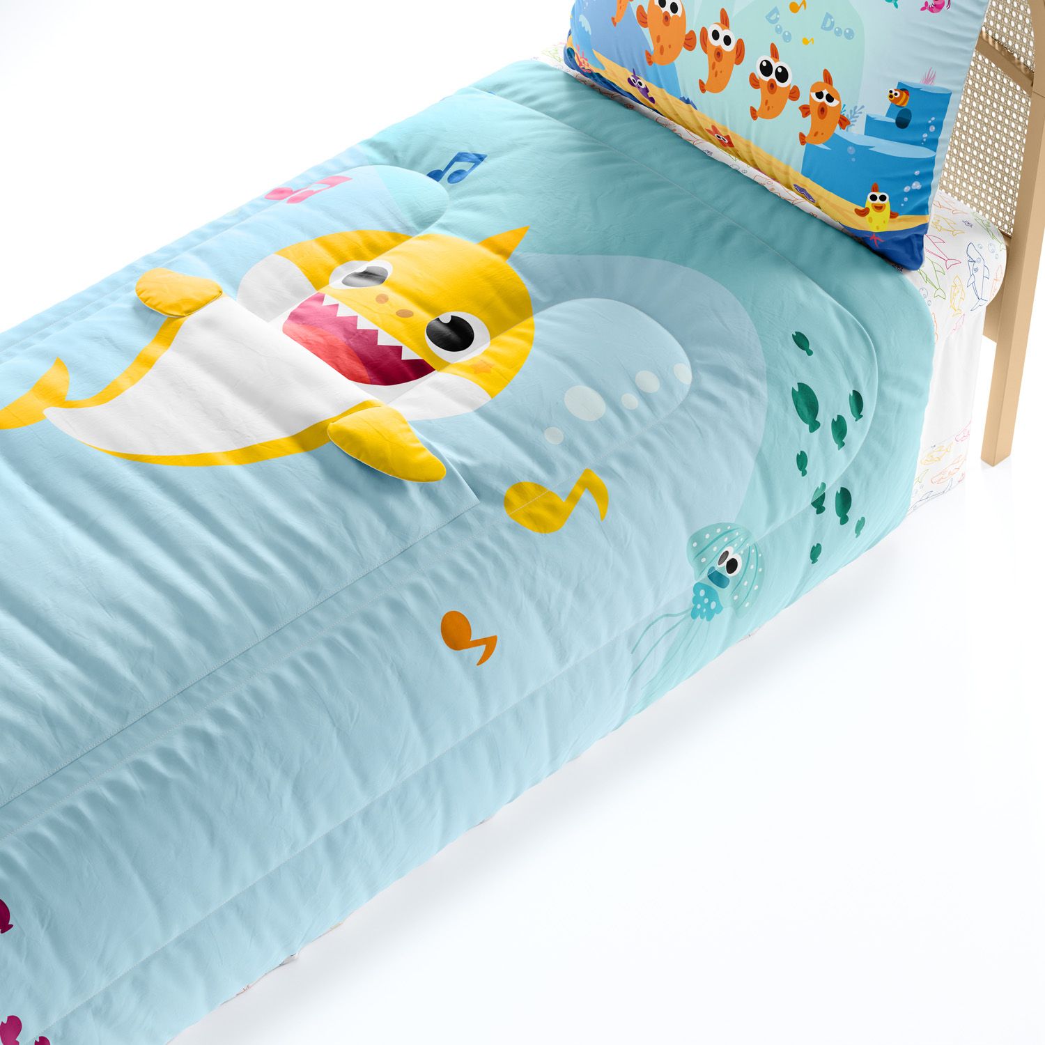 Edredom Infantil Solteiro com Bolso Baby Shark