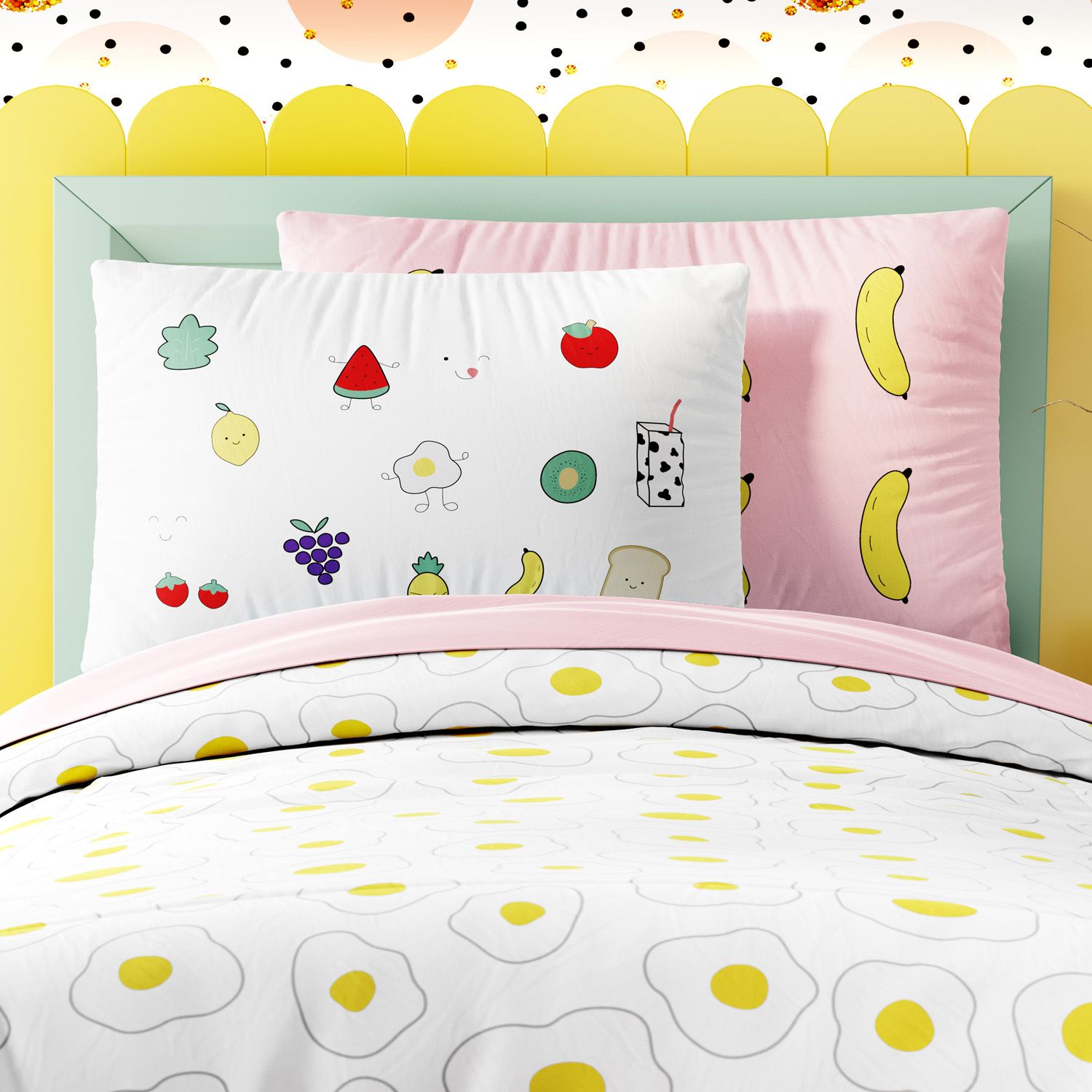 O Edredom Infantil Solteiro Ovo Frito é perfeito para decorar o quarto da criançada com um visual lúdico e divertido! A estampa exclusiva da Grão de Gente traz uma composição original de ovos fritos, uma aposta moderna para completar a decoração com uma pitada extra de criatividade.