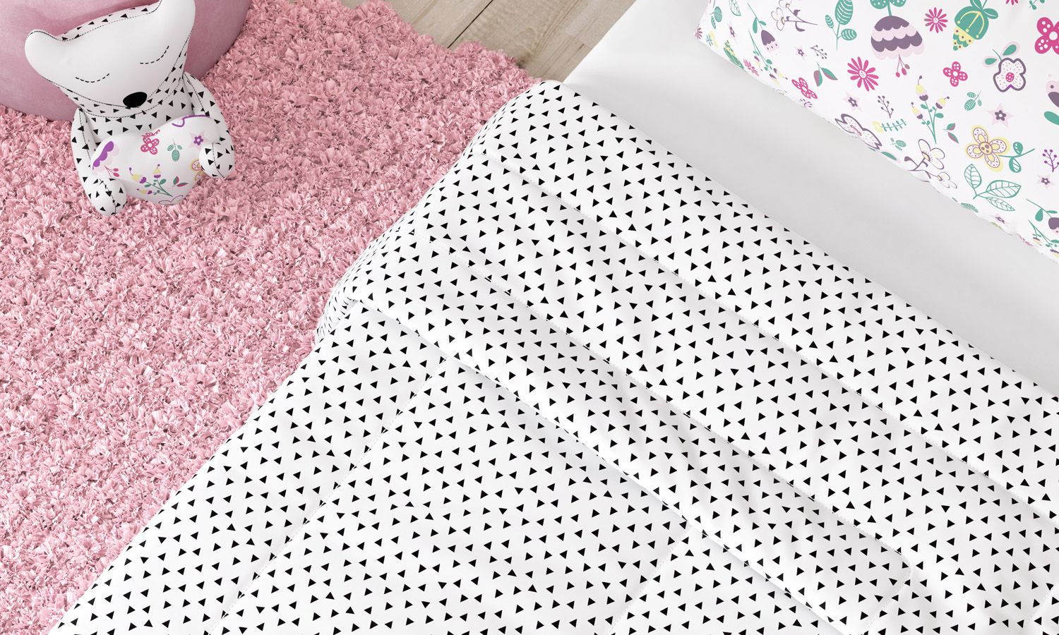 Edredom Infantil Solteiro Triângulos Floral Moderna