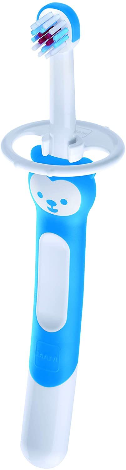 Escova de Dentes Training Brush Azul vai ajudar os bebês a escovarem os dentes corretamente. Ela torna mais fácil a escovação desde o início. E com a ajuda da mamãe e do papai, fica ainda mais fácil.