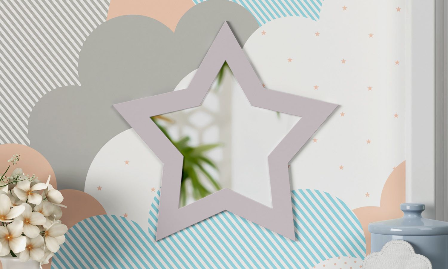 O Espelho Estrela 20cm traz um visual lúdico ao quarto de bebê! De material 100% MDF, o espelho para quarto de bebê possui furo traseiro para auxiliar na fixação do objeto.