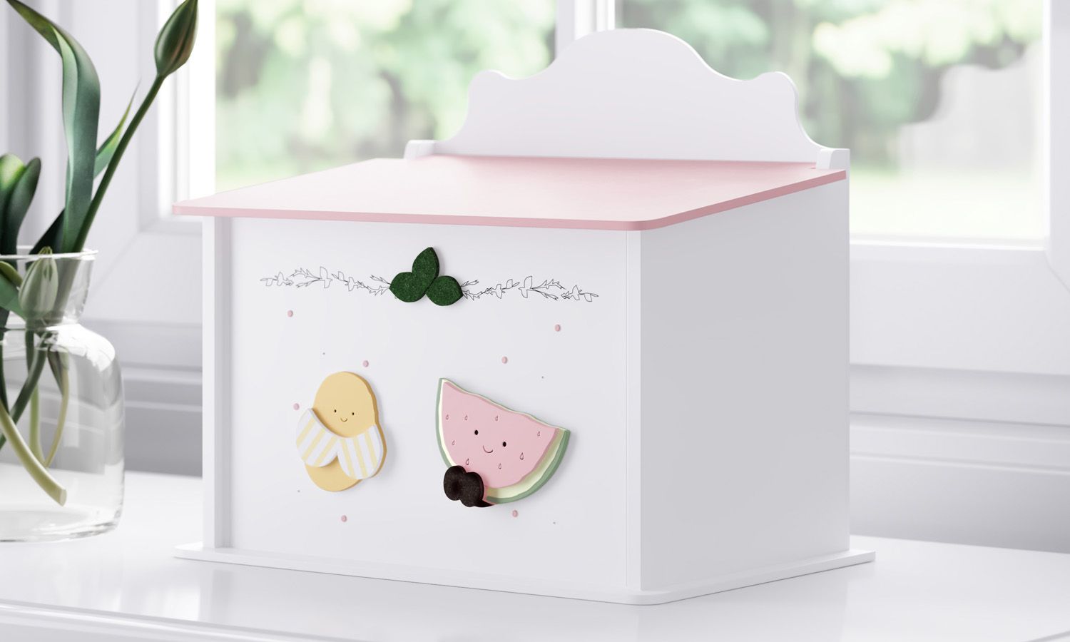 Farmacinha Banana e Melancia Frutinhas facilita a rotina de cuidados do seu amor! A peça possibilita que a organização do quarto de bebê esteja sempre em dia. É perfeita para armazenar medicamentos, gazes, lenços e algodão, por exemplo. Seu design é versátil e vai abrilhantar a decoração do cantinho mais especial da casa, com a frente da peça gravada à laser e aplicação de charmosas frutinhas! Pequenas bolinhas pintadas à mão e folhas em feltro trazem ainda mais delicadeza ao acessório.