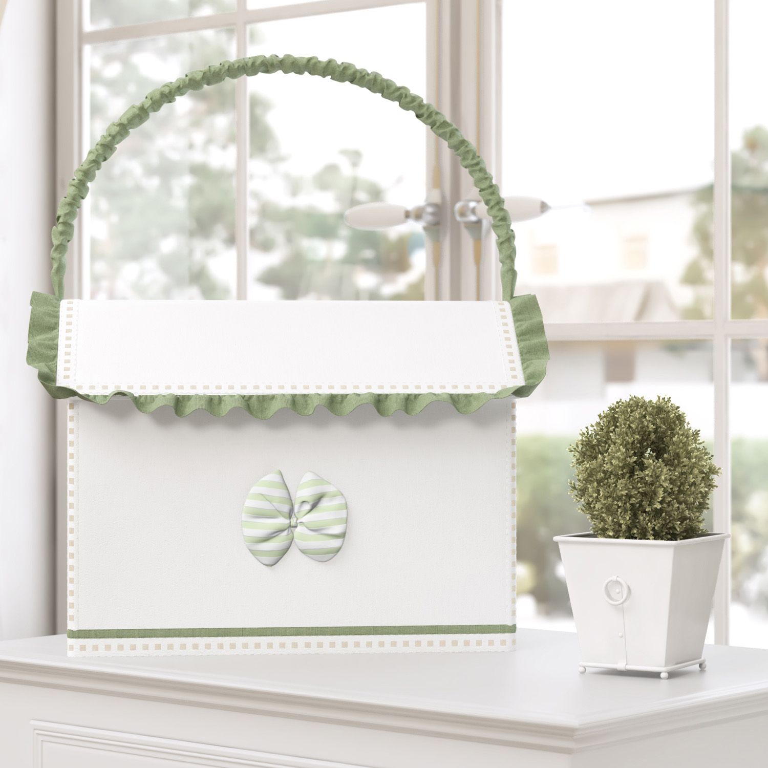 As mamães mais experientes sabem a diferença que uma bom kit de farmácia faz em casa! Por isso, a Grão de Gente criou a Farmacinha Brincadeira na Selva, um acessório super funcional que vai manter a organização de medicamentos, pomadas e produtos de higiene, acrescentando muito charme e capricho ao quarto de bebê. Esse modelo exclusivo é enfeitado por um singelo laço listrado e um formoso babadinho em verde que rouba a cena. Uma boa sugestão é aproveitar a maletinha para guardar brinquedinhos, livros ou até mesmo roupinhas.
