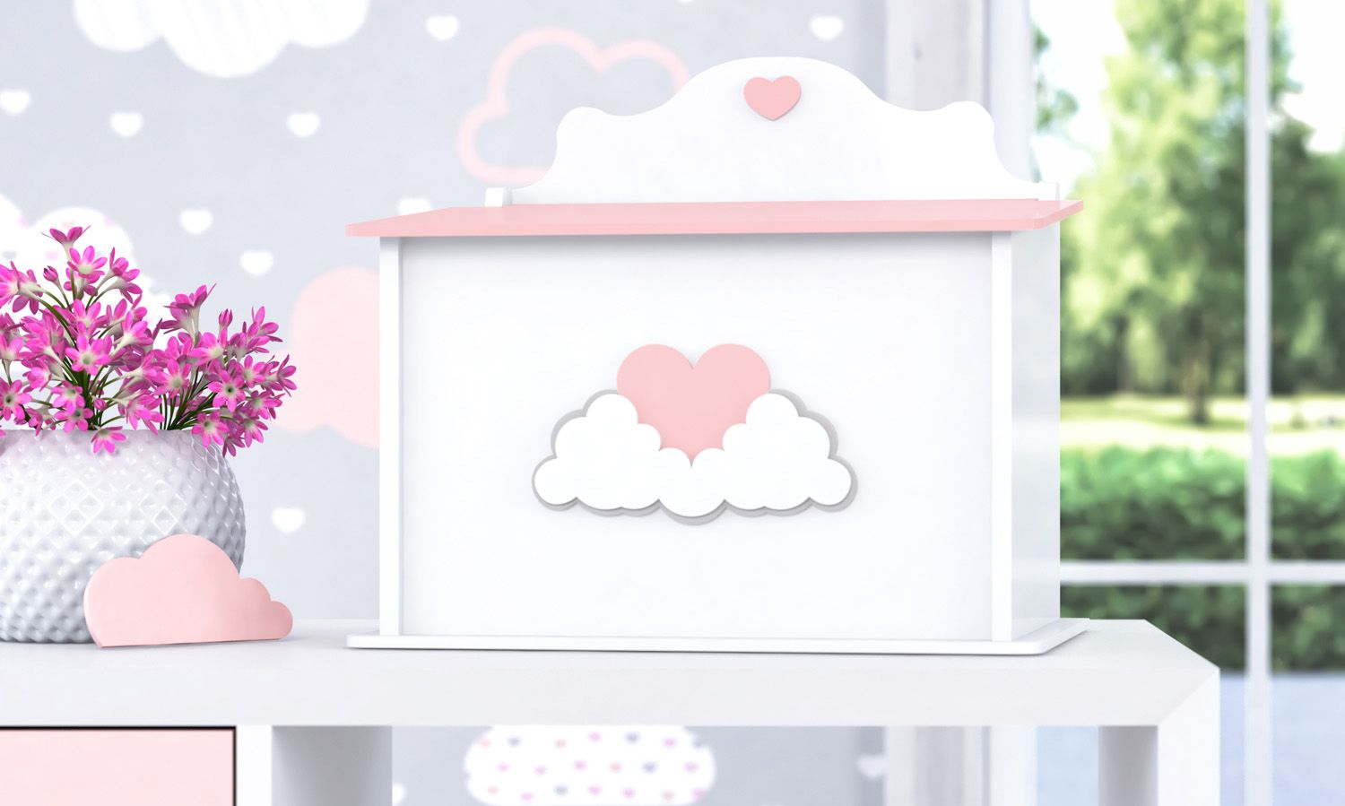 Sua rotina mais prática e o quarto de bebê ainda mais charmoso! A Farmacinha Coração nas Nuvens é confeccionada em madeira 100% MDF e combina dois elementos que são sinônimo de amor, a nuvem e o coração aplicados em madeira trazem todo o carinho da coleção Chuva de Amor - Linha Sabrina Sato Mom. Sua funcionalidade também se destaca, já que pode armazenar e organizar diversos objetos que auxiliam os pais nos cuidados diários com o bebê, como lencinhos, pomadas, cortador de unha, cotonetes, fraldas e muito mais. Confira também o Kit Higiene Chuva de Amor e torne o quarto de bebê ainda mais completo!