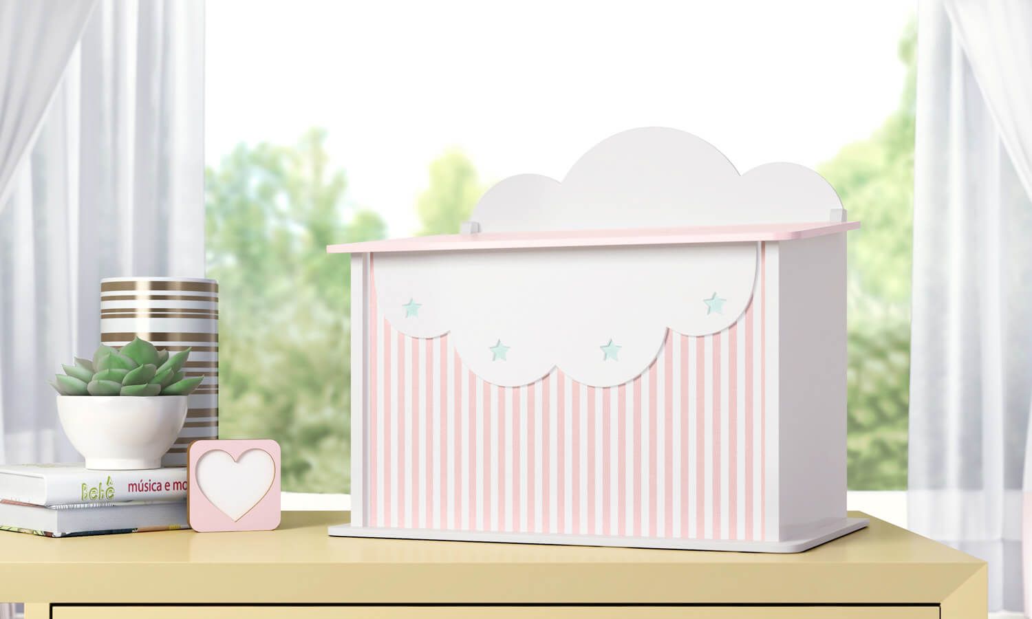 A Farmacinha Listrada com Estrelinhas da Linha Sabrina Sato Mom cumpre todos os requisitos para um quarto de bebê completo, funcional e charmoso! Confeccionada com a resistência da madeira 100% MDF, esse acessório permite que os pais organizem e tenham sempre à mão os objetos utilizados para os cuidados com a higiene da bebê. Seu visual é delicado e segue o capricho da coleção, com estrelinhas e listras nas cores branco e rosé.