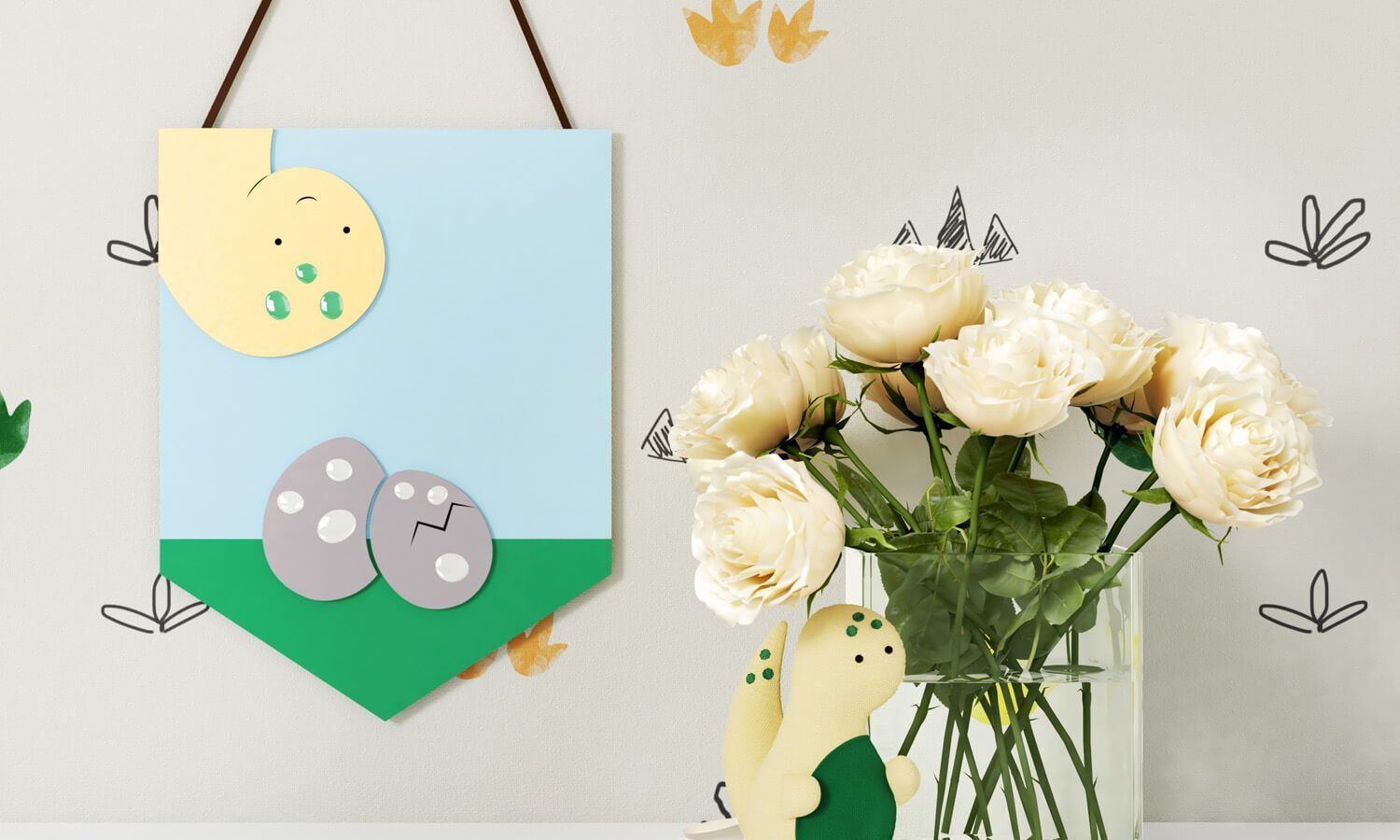 A Flâmula Amiguinho Dino é um mimo na decoração do quarto de bebê! Ela pode enfeitar portas, puxadores, cabideiros e muito mais!