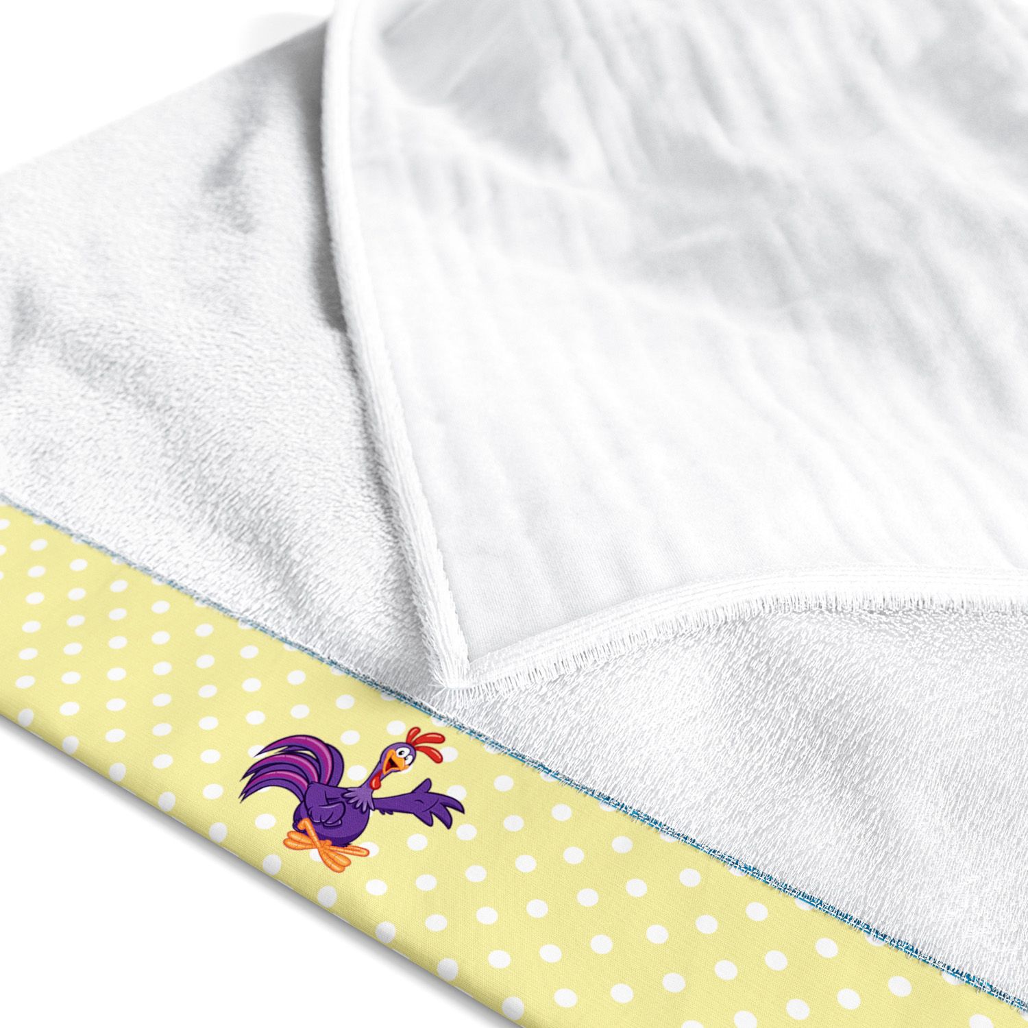 A Toalha Fralda Galo Carijó é um produto exclusivo Grão de Gente para completar o enxoval de bebê com mais praticidade e um toque lúdico!