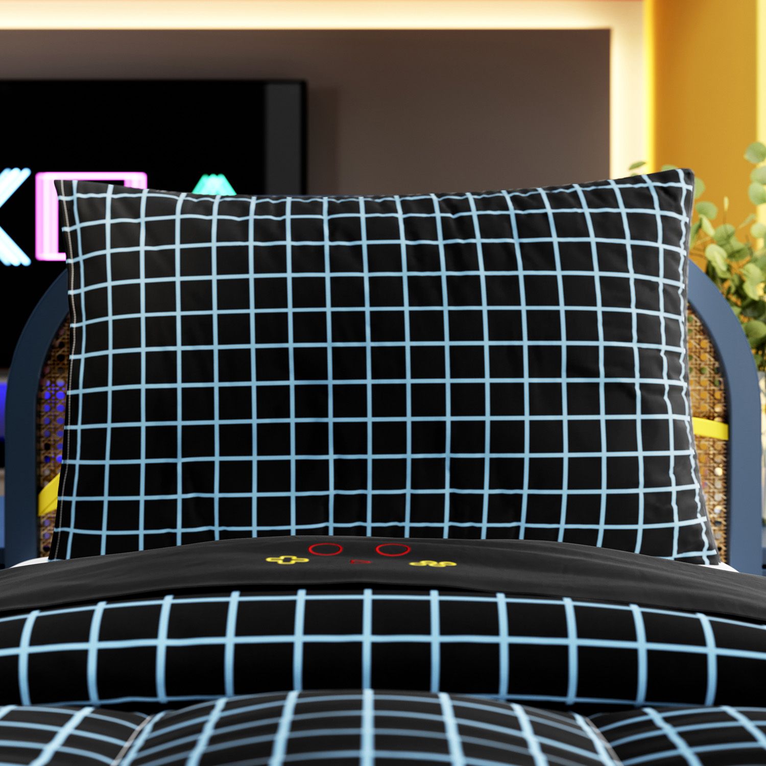 Fronha de Travesseiro Infantil Quadriculada Preto