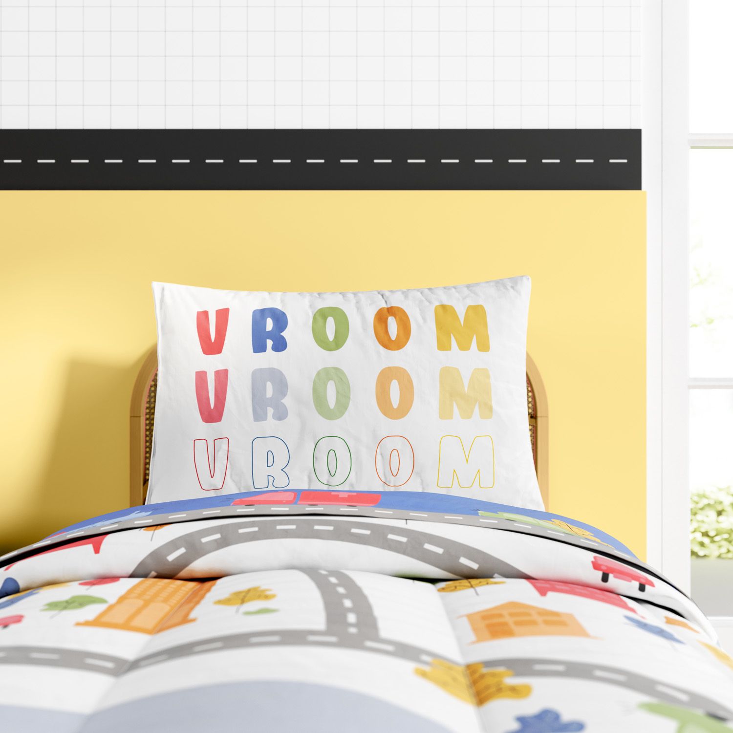 A Fronha de Travesseiro Infantil Vroom Vroom é uma criação exclusiva da Grão de Gente para completar a decoração do quarto infantil com conforto e muita originalidade.