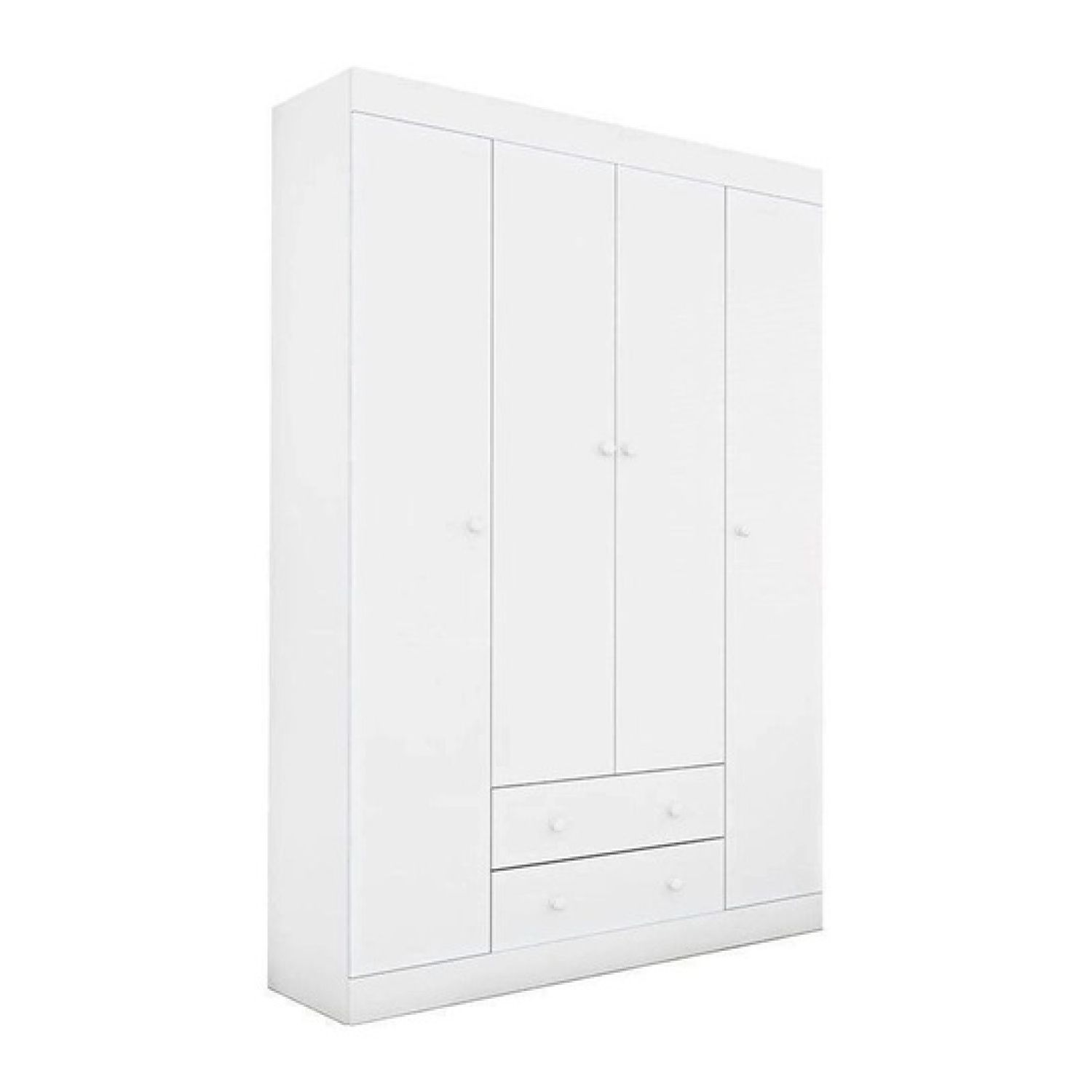 Com quatro portas, duas gavetas, um longo cabideiro e onze prateleiras internas, o móvel tem amplo espaço para armazenar roupas, mantas, cobertores, bolsas e outros acessórios.