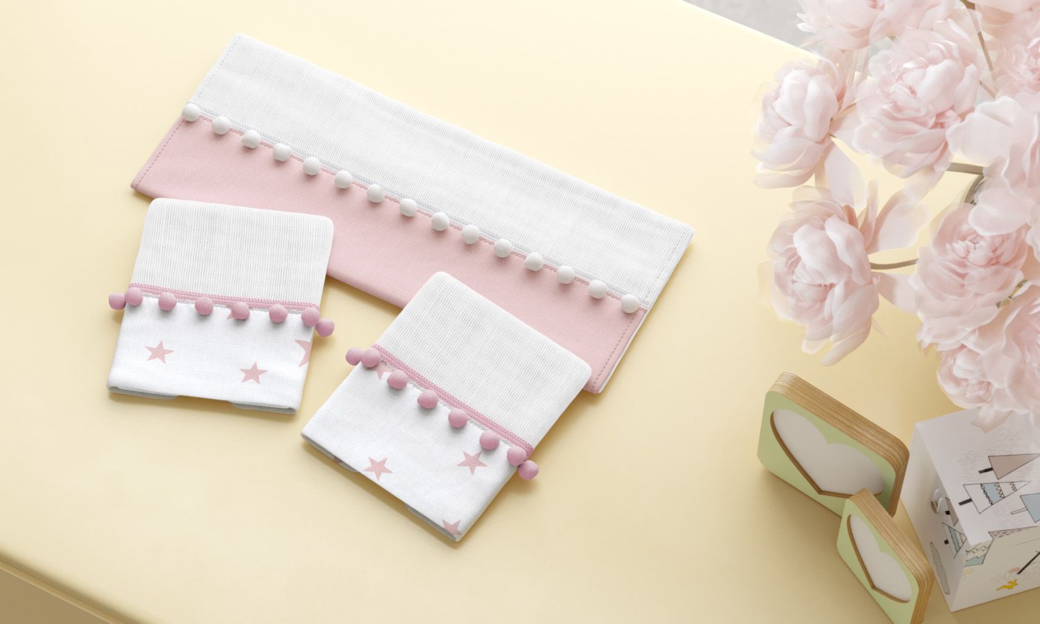 Jogo de Fraldas de Boca Barra Estrelinhas Rosa com Pompom