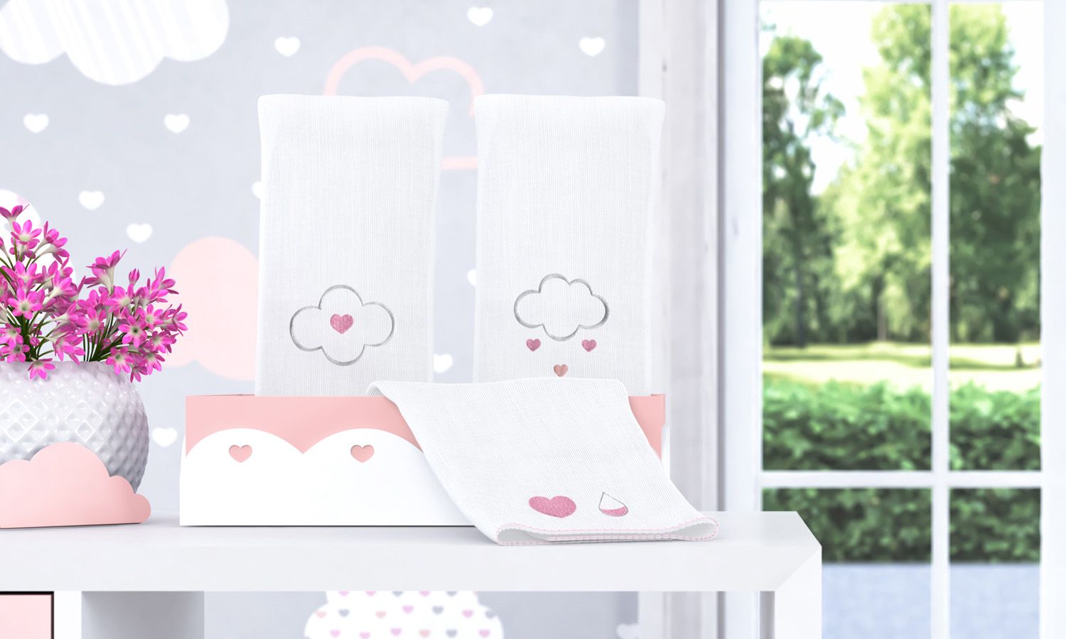 A coleção Chuva de Amor - Linha Sabrina Sato Mom conquista pelo carinho e requinte, mas também pela funcionalidade que proporciona para o dia a dia. O Jogo de Fraldas de Boca Chuva de Amor se destaca pela praticidade que oferece para as mamães e papais, já que impede que o bebê suje sua roupinha durante a alimentação. Os bordados de nuvem, coração e gotinhas de carinho trazem o design charmoso que é a marca dessa bela coleção, enquanto o tecido 100% algodão garante conforto no contato com a pele sensível da neném.