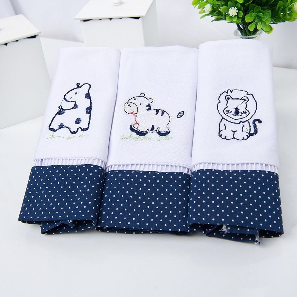 Jogo de Fraldas de Boca em Malha Leãozinho Azul Marinho