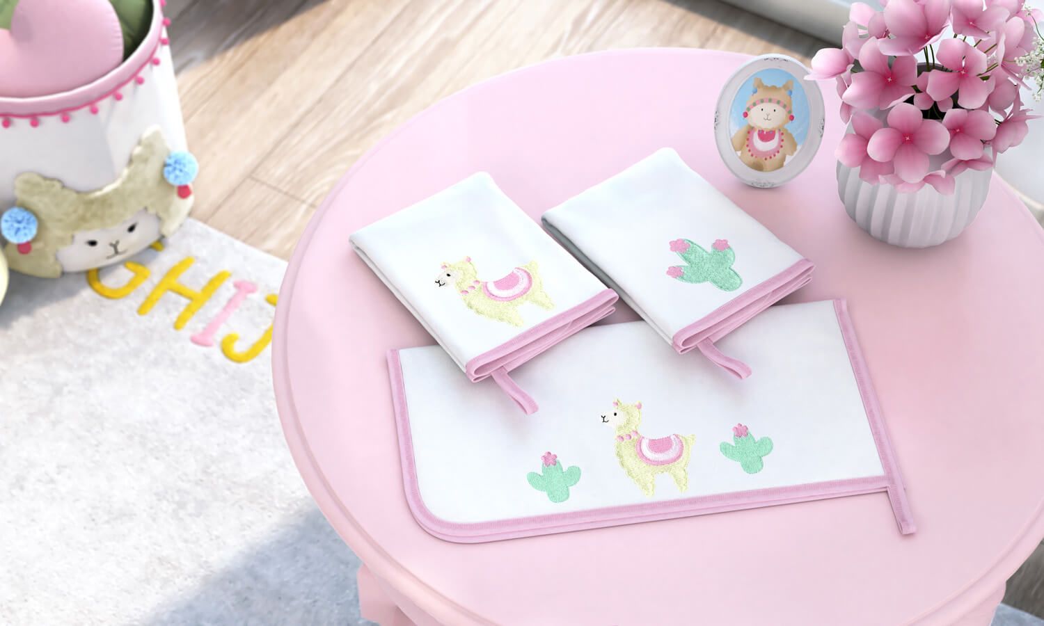 Charmoso, confortável e funcional, esse acessório com três peças vai facilitar a sua rotina! O Jogo de Fraldas de Boca Malha Lhama e Cactos da coleção Amiguinhas Lhamas – Linha Sabrina Sato Mom proporciona para a neném o aconchego do tecido malha 100% algodão, além de evitar que ela se suje durante a amamentação ou alimentação. O bordado da simpática lhama e do charmoso cacto traz todo o encanto da coleção!