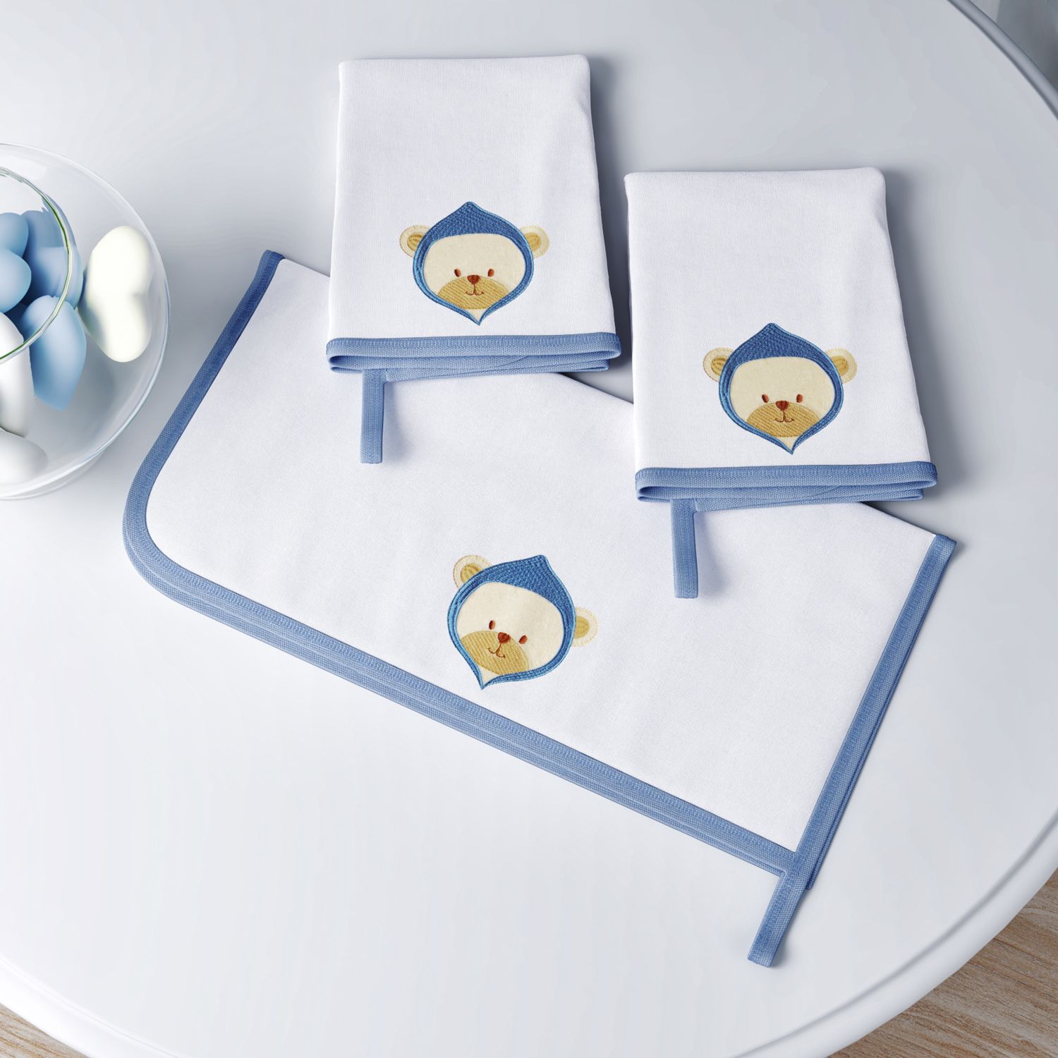 O Jogo de Fraldas de Boca prepara as mamães para as mais diversas situações do dia a dia! Numa fina confecção, as três fraldinhas de malha 100% algodão limpam babinhas, sujeiras na hora de papar e golfadas acidentais. Parte da Coleção Ursinho Bebê, as peças ganharam um estilo suave e lúdico com o exclusivo bordado de urso, presente por todo esse enxoval masculino. Graças às alças, você pode pendurar as fraldinhas ou chupetas! Confie no seu bom gosto e aposte nessa linda opção de presente.