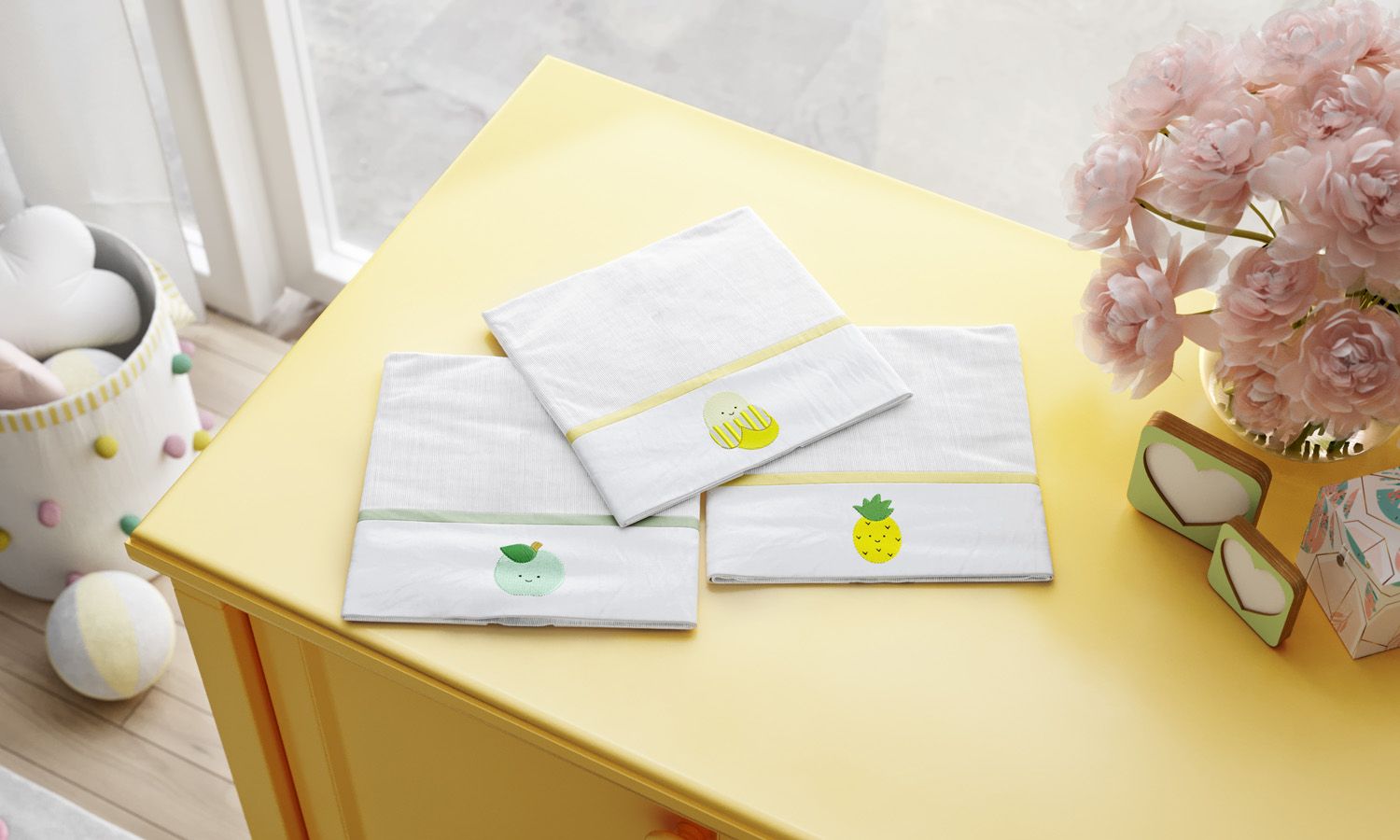 Jogo de Fraldas de Ombro com Barra Bordado Frutinhas