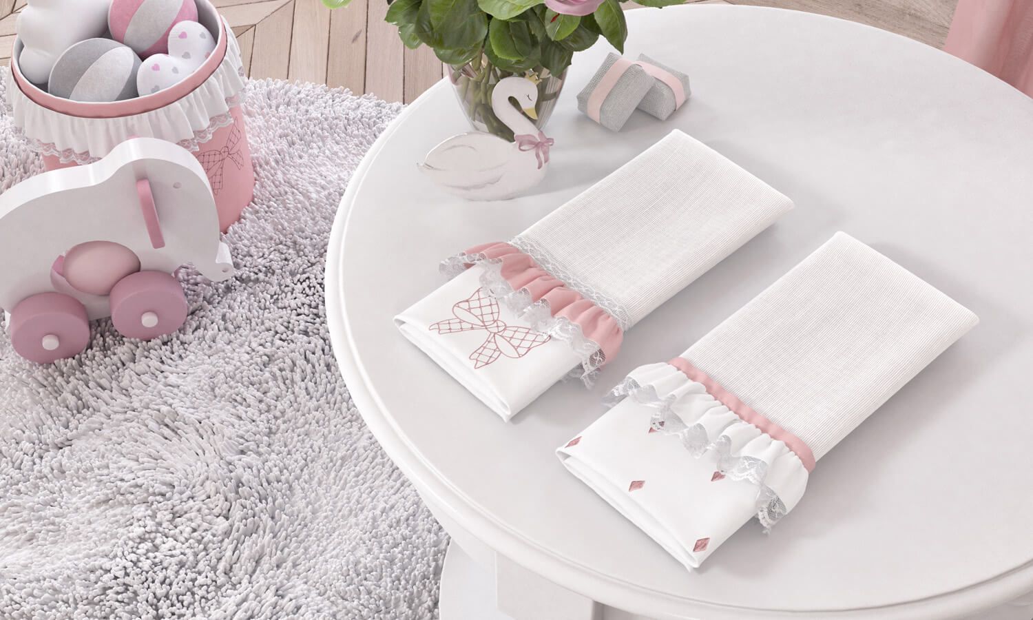 Jogo de Fraldas de Ombro com Barra de Rendinha Princesa Clássica