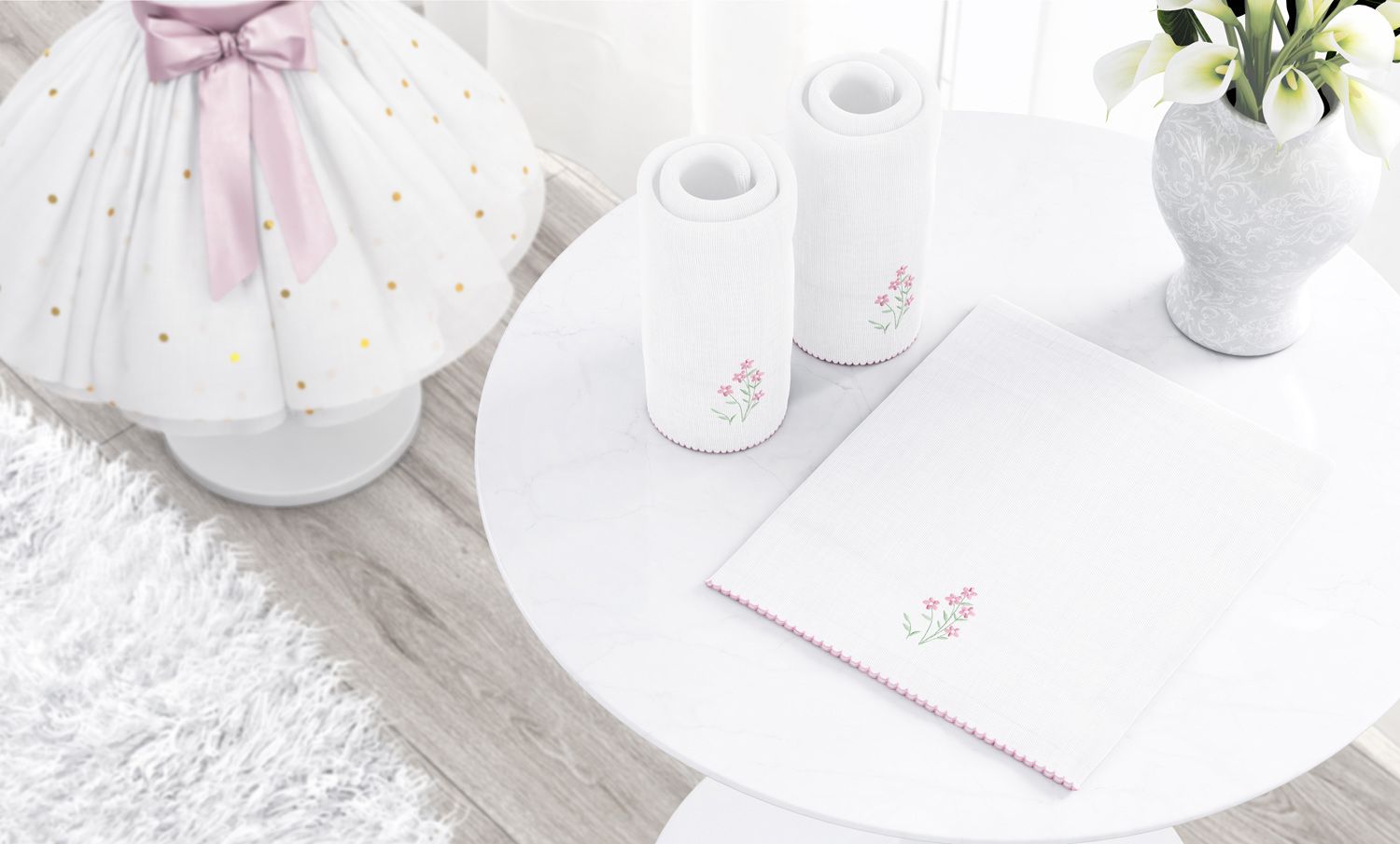 As mamães e os papais cuidam muito bem das suas princesinhas e gostam de deixá-las sempre limpinhas, cheirosas e impecáveis. Com o Jogo de Fraldas Ombro Floral Monet com 3 isso fica muito mais fácil, já que as pequeninas ficam sempre protegidas das golfadas e babinhas que podem acabar sujando seu amor. Também chama atenção o conforto e a maciez do tecido 100% algodão. O design segue a tendência dessa coleção tão graciosa, com florzinhas bordadas que são lindas e encantadoras!