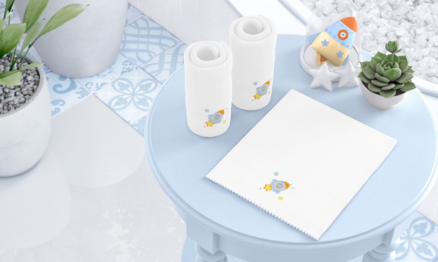 Colocar seu amor no colo, cobrir o bebê-conforto ou carrinho, usar sobre o trocador, para naninha ou como a sua imaginação mandar! Essa são algumas das utilidades do Jogo de Fraldas Ombro Foguete Astronauta Azul com 3. Sua versatilidade e a delicadeza dos bordados de foguetinhos divertidos deixam as mamães encantadas! As três peças tamanho G deixam a rotina dos papais mais fácil, já que enrolam o neném, forram assentos e limpam as sujeiras e babinhas.