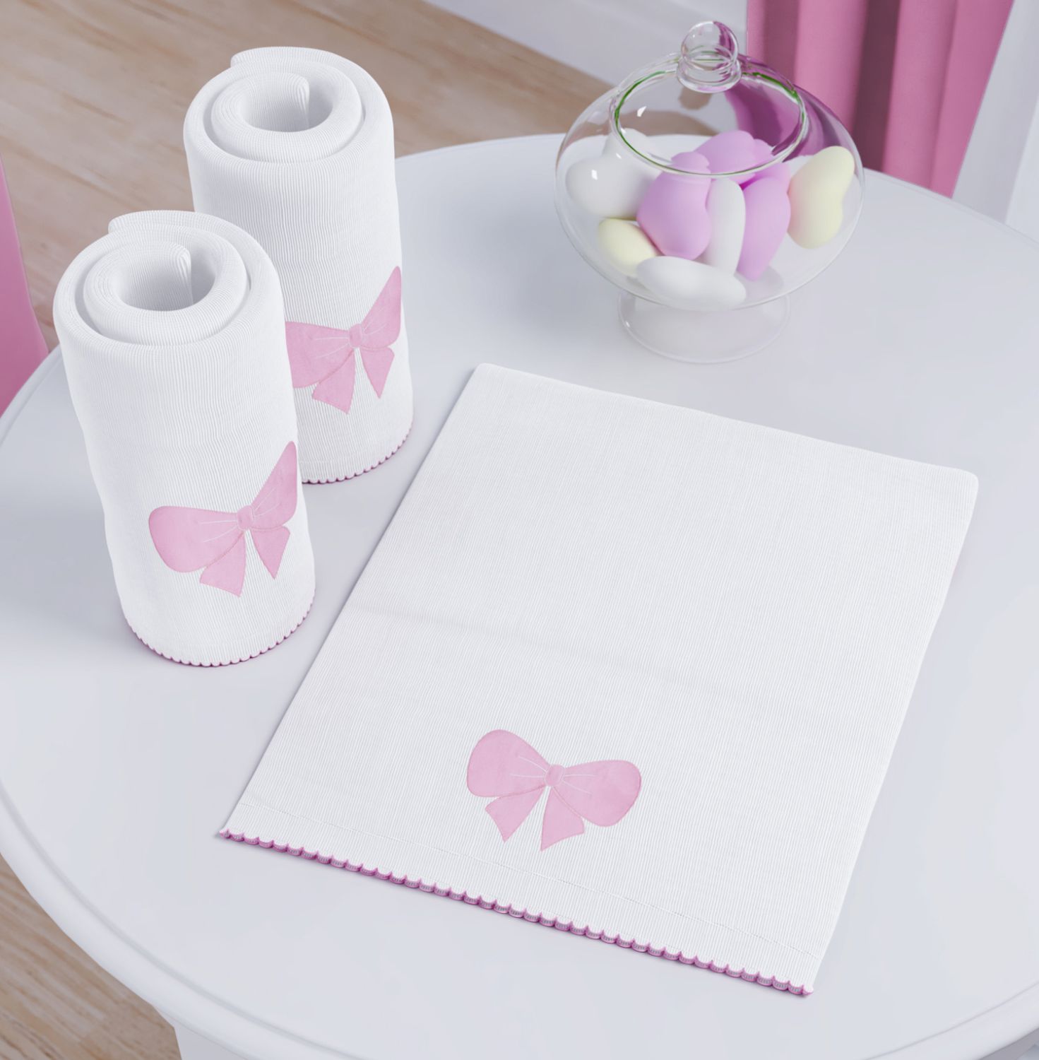 Pronto para facilitar a agitada rotina, o Jogo de Fraldas de Ombro prepara as mamães para as mais diversas situações! Numa fina confecção, as três fraldinhas tamanho G, 100% algodão, limpam babinhas e sujeiras, enrolam a neném e forram trocadores ou assentos. Parte da Coleção Ursinha Bebê, as peças ganham um estilo romântico e feminino com o exclusivo bordado de laço rosa, presente por todo esse enxoval de menina. Confie no seu bom gosto e aposte nessa linda opção de presente! Dica Grão de Gente: Para cumprir todas essas funções, as Fraldinhas de Ombro tem medidas maiores do que a de boca.