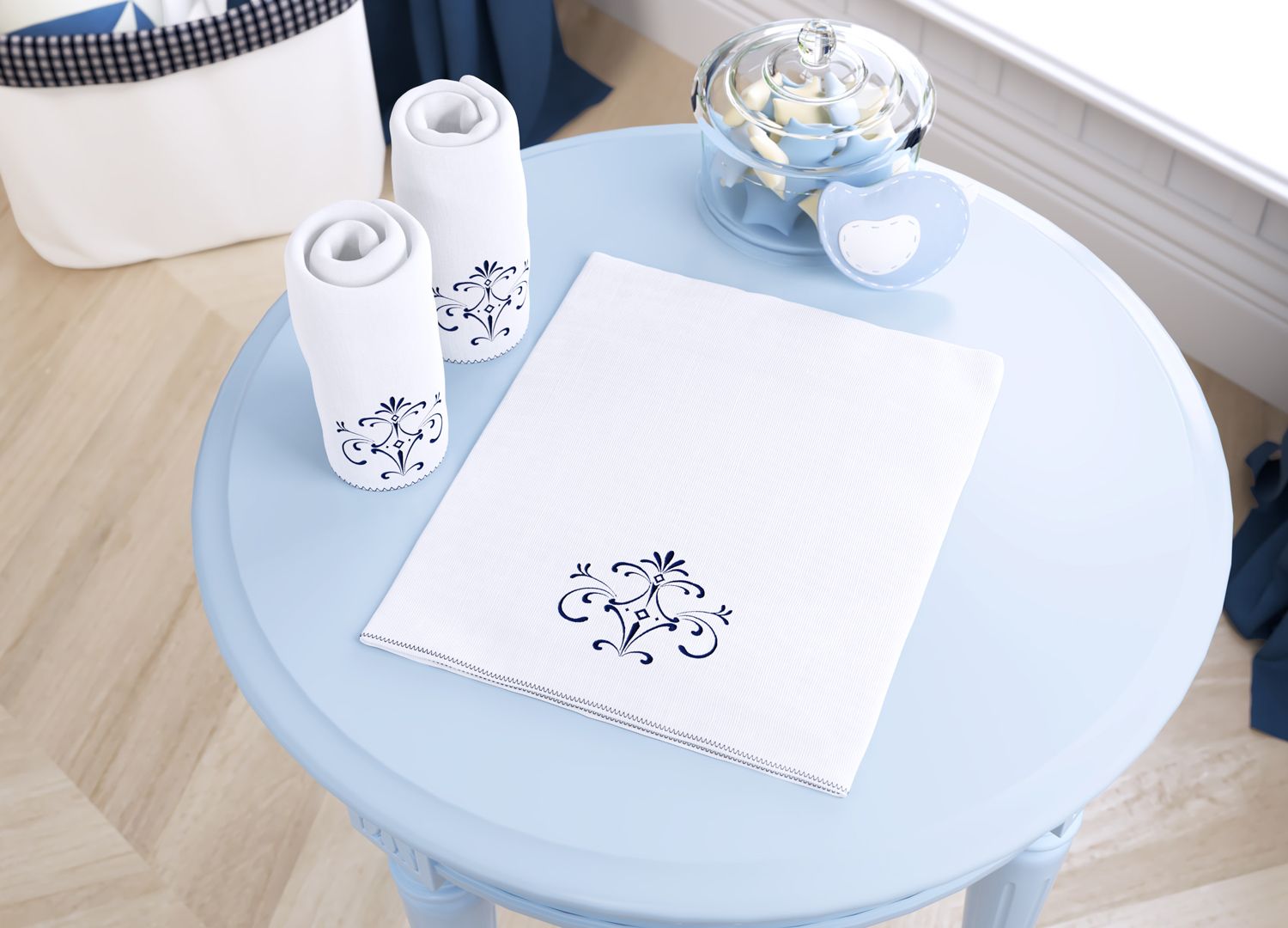 Versátil e refinado, esse acessório será o melhor aliado das mamães! A Grão de Gente sabe que as fraldinhas de pano são essenciais no enxoval do neném, já que podem ser usadas em diversas situações para proteger o neném. Pensando nisso, criamos o Jogo de Fraldas, um conjuntinho composto por três fraldinhas perfeitas para proteger o bebê do sol e do vento excessivo, além de forrar o trocador, o estofado da cadeirinha do carro e até os assentos dos carrinhos de supermercado. Um deslumbrante brasão, bordado num tecido 100% algodão, enfeita esse acessório repleto de elegância e bom gosto! Dica Grão de Gente: para suprir tantas necessidades, esses modelos são maiores que as fraldas de boca.