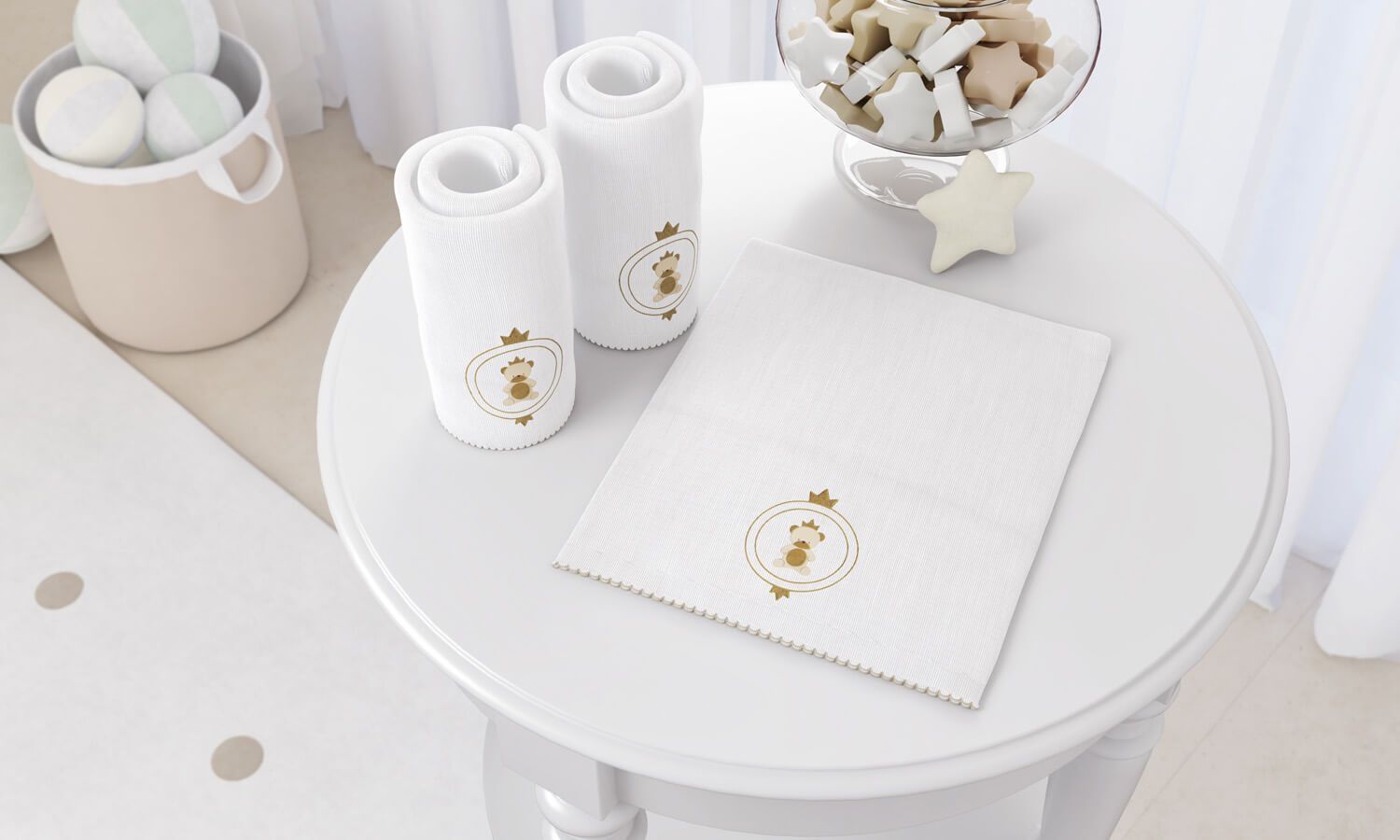 O tecido macio 100% algodão do Jogo de Fraldas de Ombro Urso Teddy Realeza vai manter o seu príncipe sempre elegante! Essenciais, as três peças tamanho G respeitam a pele sensível do recém-nascido e facilitam a rotina da família, já que enrolam o bebê, limpam babinhas e sujeiras e forram assentos. Toda a nobreza dessa coleção aparece no exclusivo bordado de urso coroado e a sofisticada paleta de cores, com palha, branco e um requintado tom de azul — a cor preferida dos meninos! Dica Grão de Gente: Para cumprir todas essas funções, as Fraldinhas de Ombro têm medidas maiores do que a de boca.