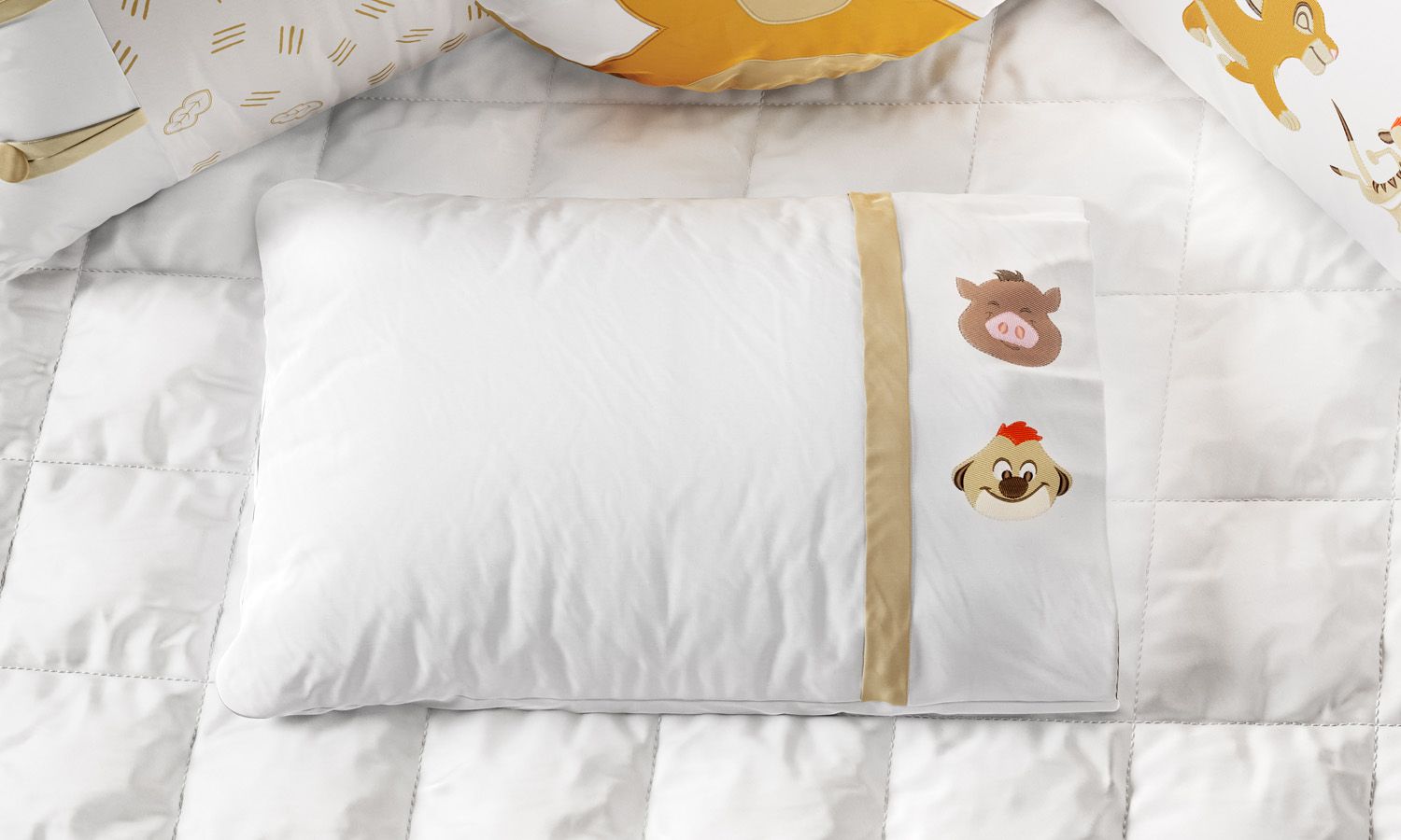 O Jogo de Fronhas Bordadas Amiguinhos O Rei Leão traz o encanto desse clássico emocionante da Disney para o bercinho do seu bebê! Confeccionadas com o toque suave do tecido 100% algodão, que respeita a pele sensível dos recém-nascidos, nossas fronhas são bordadas com os personagens mais queridos de O Rei Leão: Simba, Nala, Timão, Pumba e Zazu.