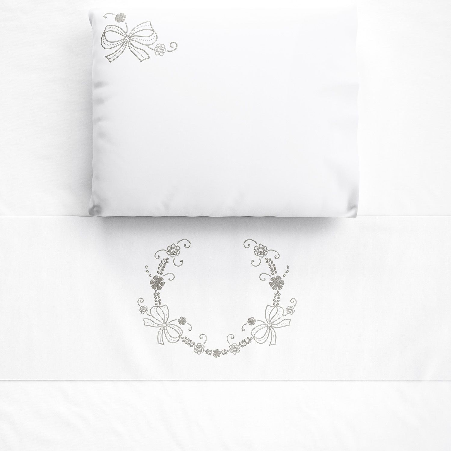 O Jogo de Lençol de Berço Arabesco Prata é um conjunto completo para o enxoval do bebê dos sonhos! Ele vem com três peças essenciais para o berço: lençol de baixo branco com elástico, lençol de cima branco com vira estampada e fronha branca com estampa.