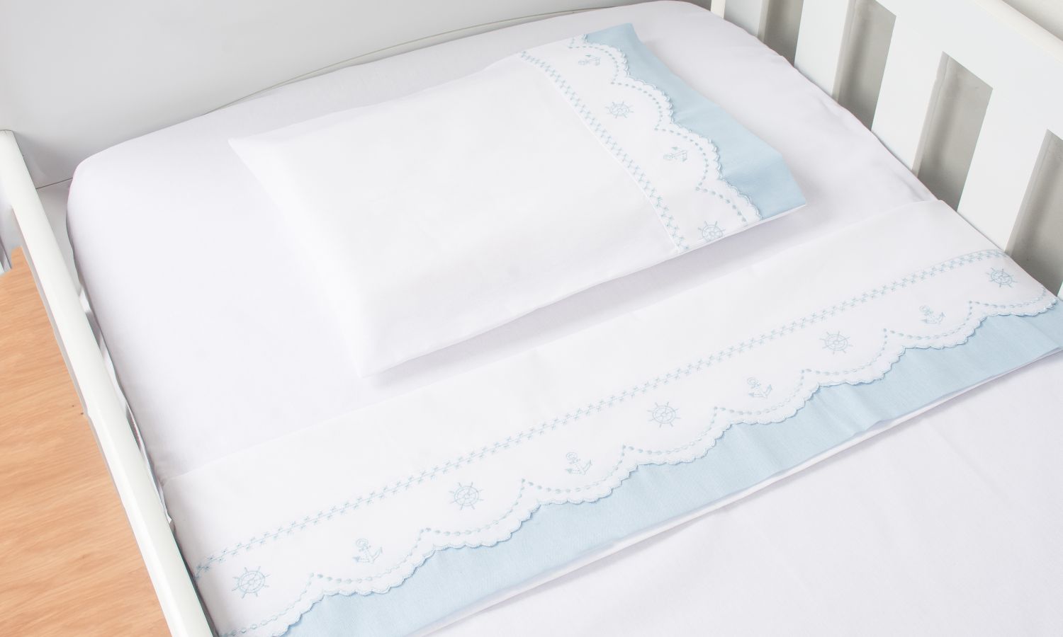 Jogo de Lençol Berço Bordado Leme Azul 3 Peças