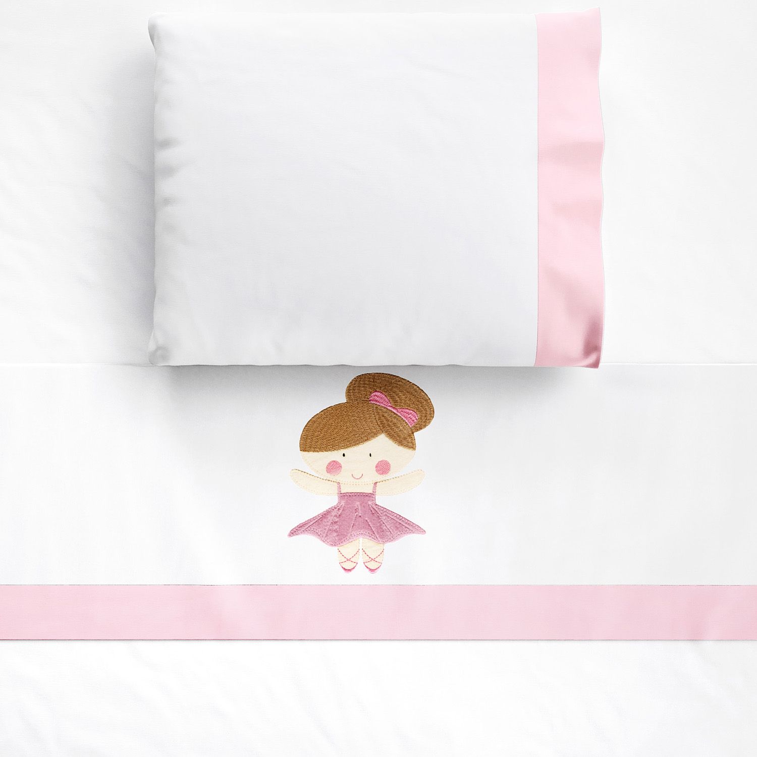 Jogo de Lençol Berço Bordado Pequena Bailarina 3 peças