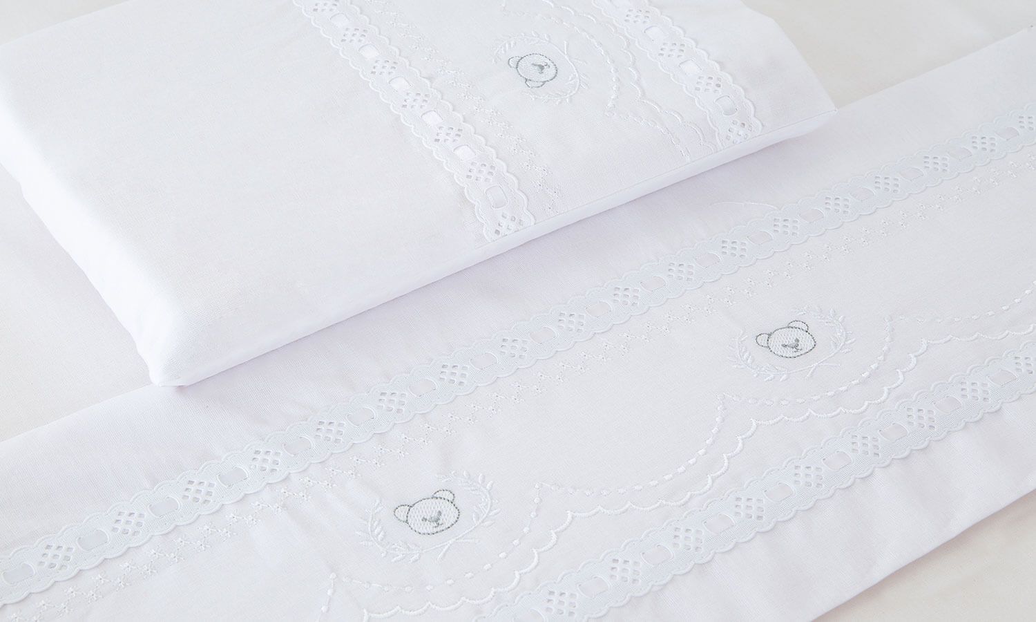 Jogo de Lençol Berço Bordado Ursinho Real Branco 3 Peças