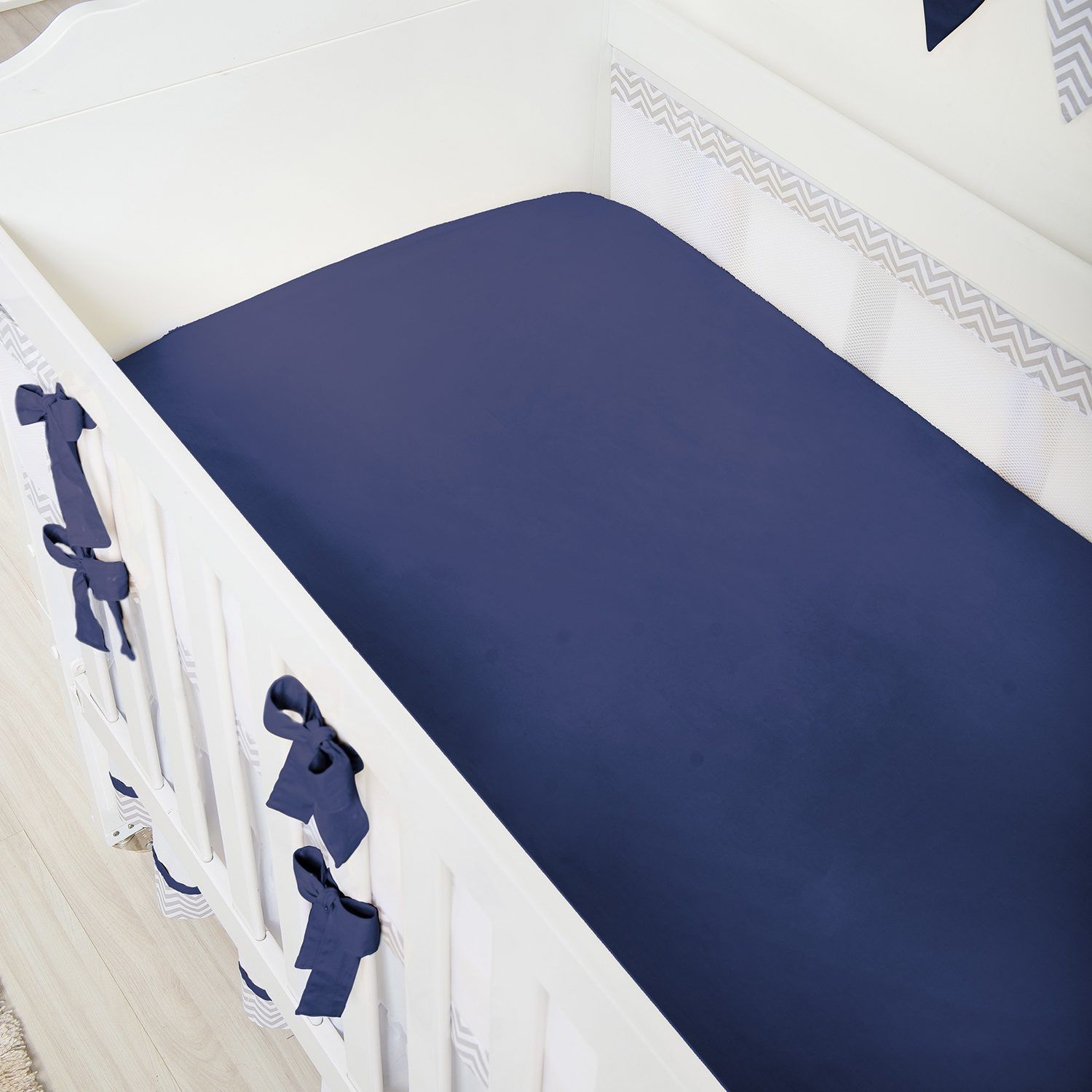 Jogo de Lençol Berço Chevron Azul Marinho 3 Peças