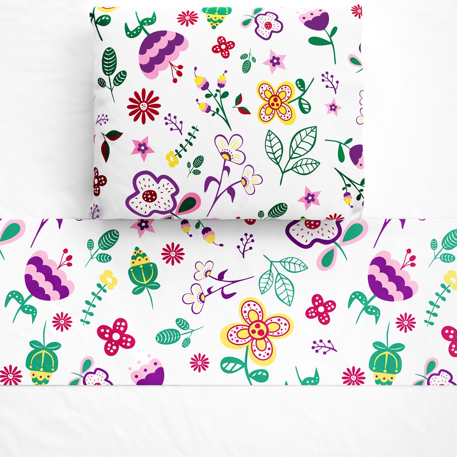 O Jogo de Lençol Berço Floral Moderna completa o enxoval do bebê. O conjunto vem com três peças essenciais para o berço: lençol de baixo branco com elástico, lençol de cima com vira floral e fronha branca com estampa floral.