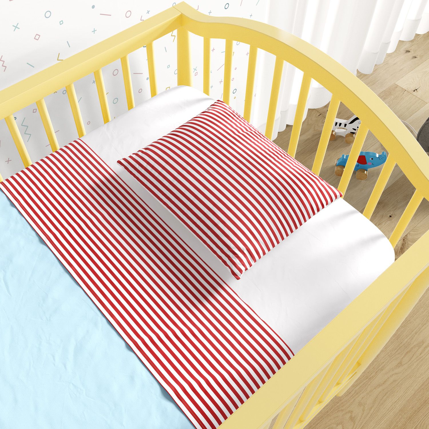 Jogo de Lençol Berço Listras Vermelho e Azul 3 Peças