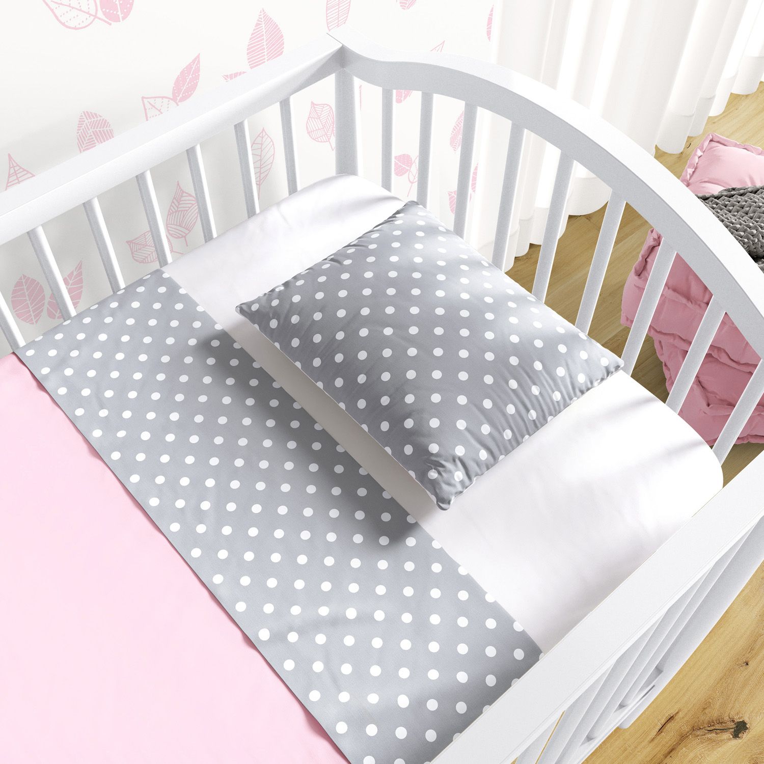 Jogo de Lençol Berço Poá Rosa e Cinza 3 peças
