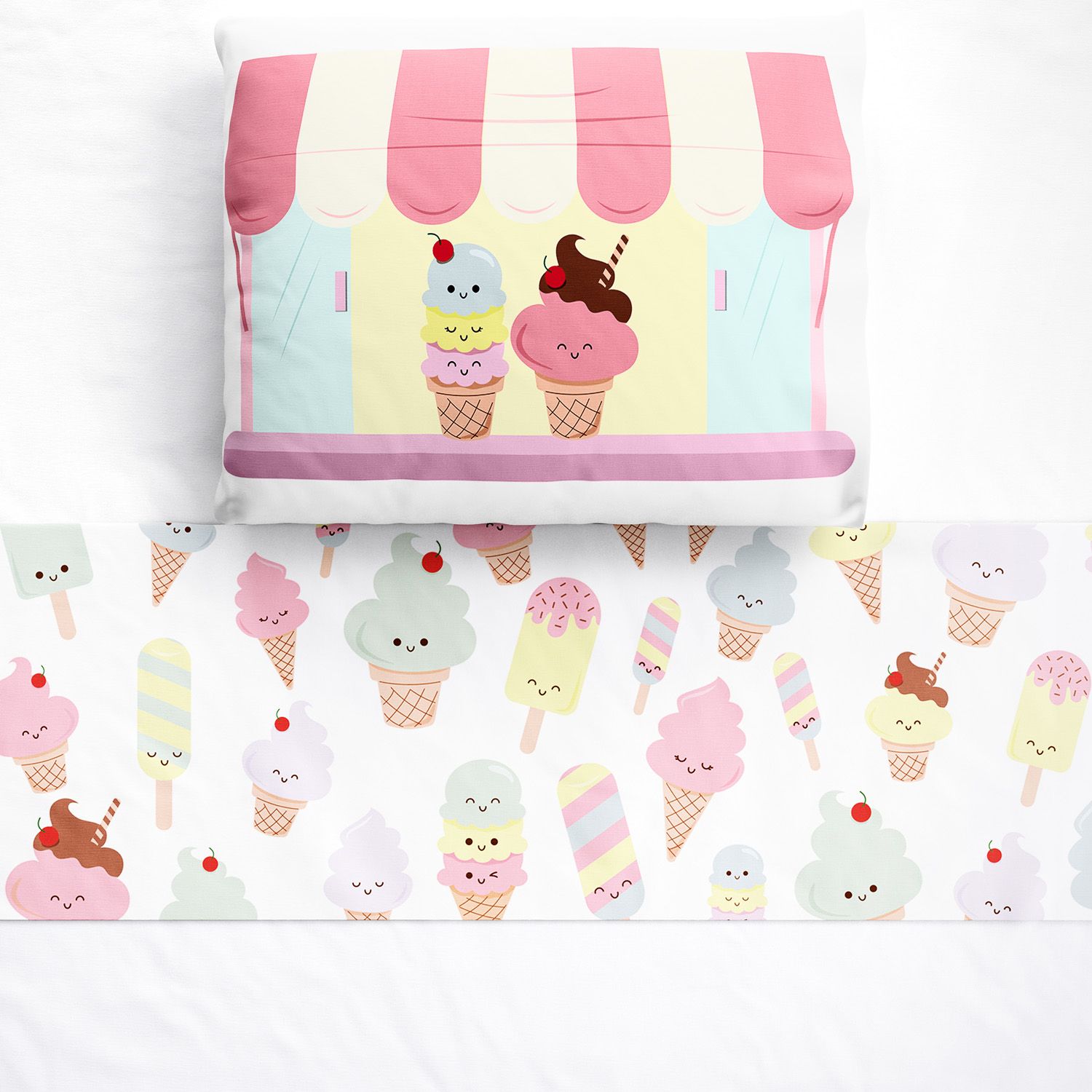 Jogo de Lençol Berço Sorvete Colorê 3 peças