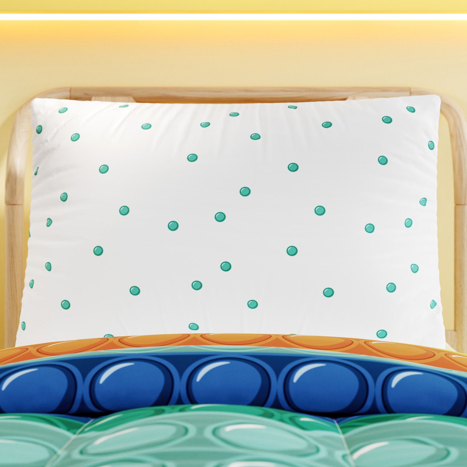 O Jogo de Lençol Infantil Pop It Verde e Amarelo leva para a cama aquele toque original de alegria e muito conforto. Em estampa divertida de bolinhas, combina com qualquer decoração, perfeitamente criado para surpreender toda a família.