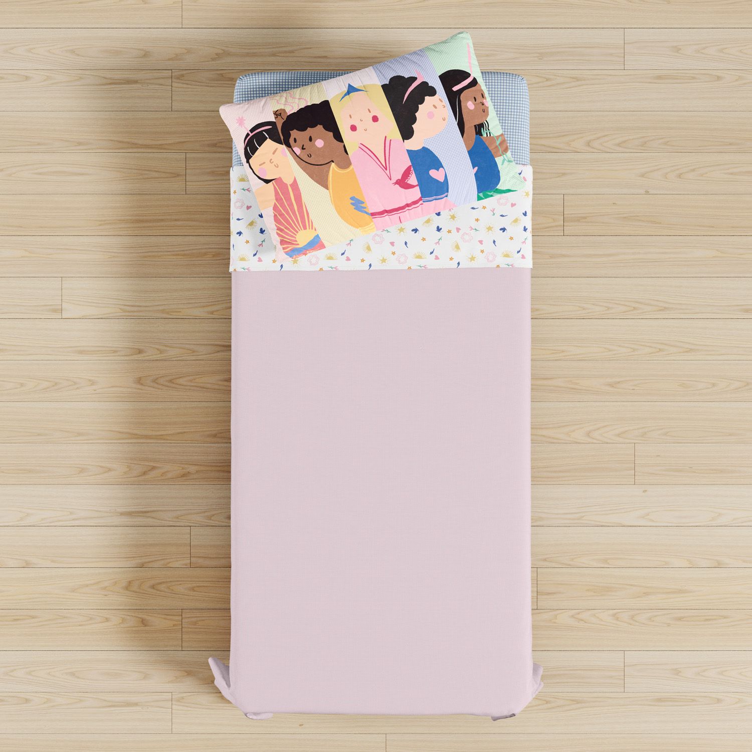 Criação exclusiva da Grão de Gente para a linha Sabrina Sato Mom, o Jogo de Lençol Infantil Solteiro Heroínas é perfeito para crianças cheias de personalidade e que amam soltar a imaginação.