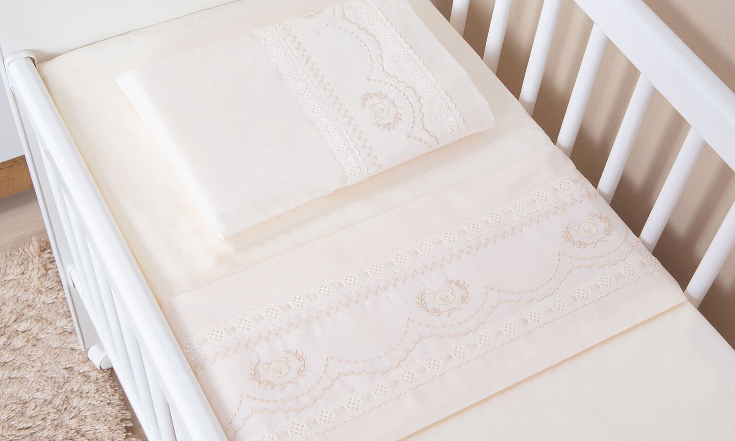 Jogo de Lençol Mini Berço Ursinho Real Branco