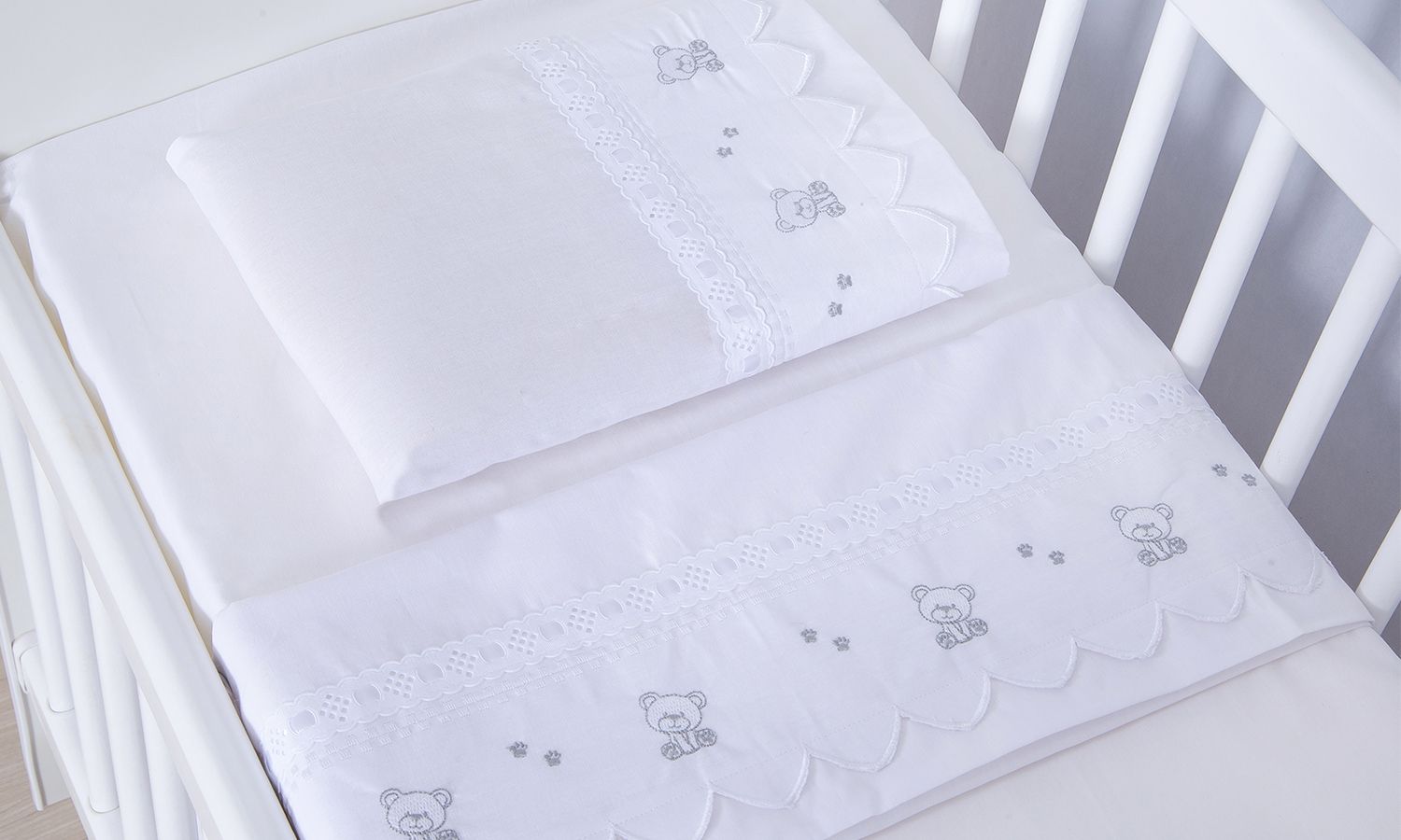 Jogo de Lençol Mini Berço Urso Teddy Branco