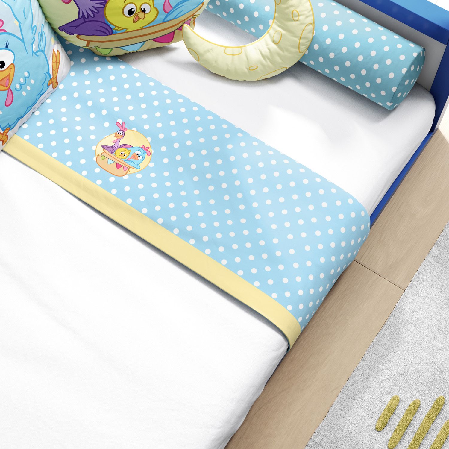 Jogo de Lençol Mini Cama Galinha Pintadinha Poá Azul Bebê