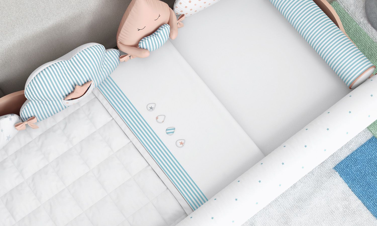 O Jogo de Lençol para Mini Cama Gotinhas garante um soninho repleto de conforto no quarto de bebê. Ele conta com tecido 100% algodão, bordado de gotinhas coloridas e estampa listradinha.